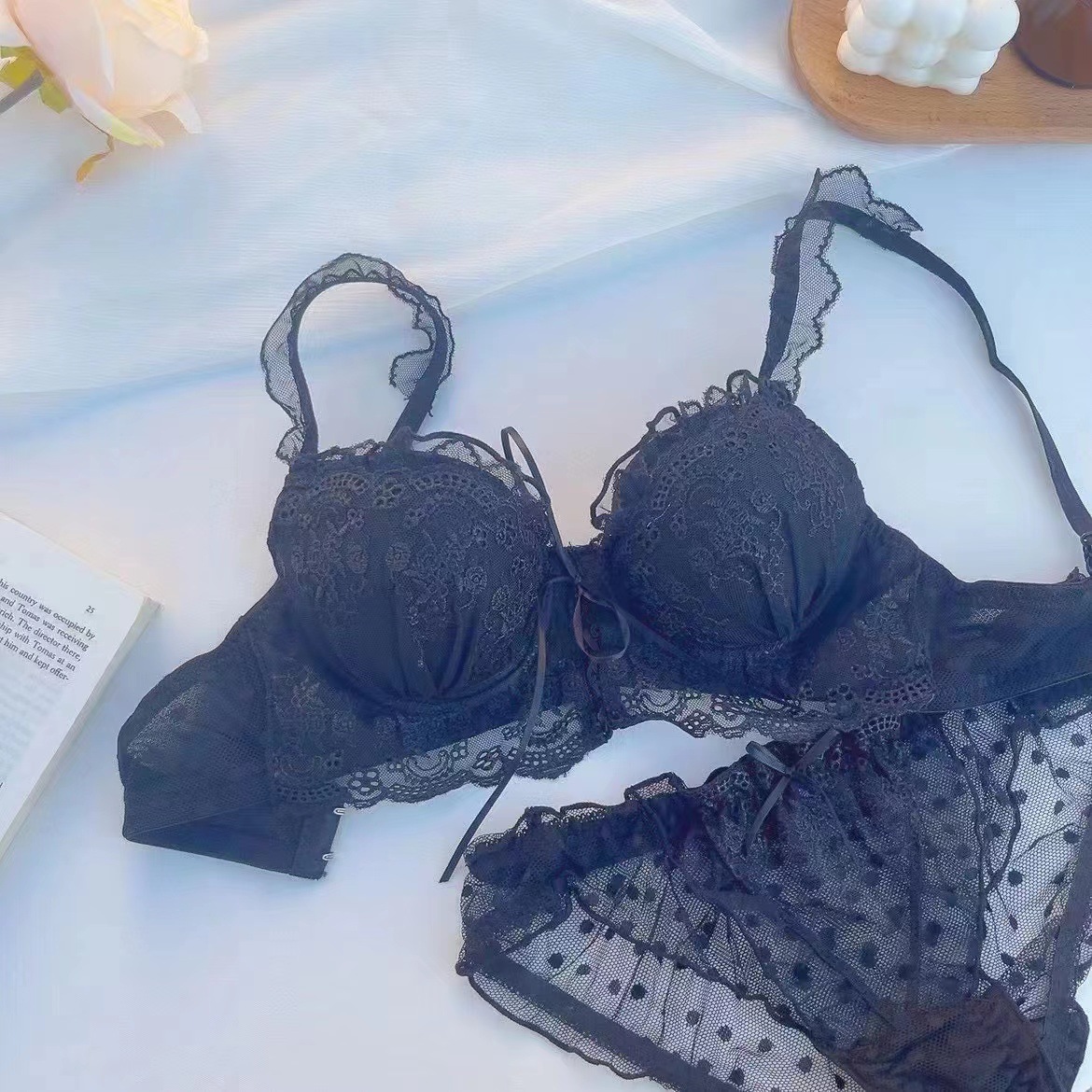 일본 스타일 순수한 욕망 속옷 여자의 작은 가슴 수집 아니 강철 반지 달콤한 귀여운 학생 브래지어 섹시한 레이스 브래지어 세트