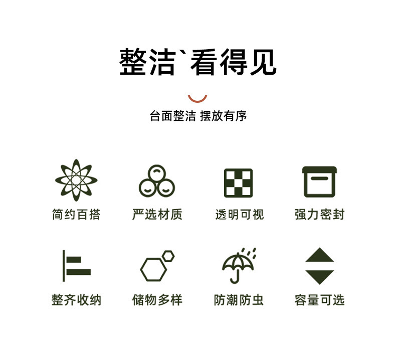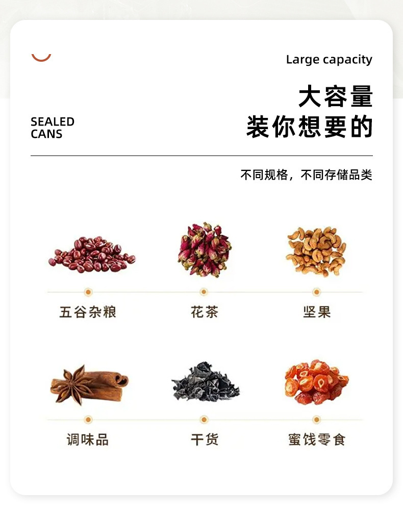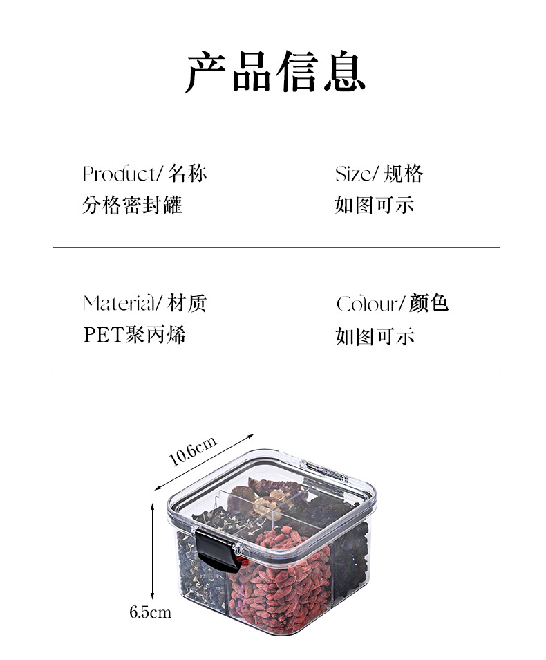 小提示由于密封在包装中,刚收到可能留有残留少许气味,材质为PET材质,不适合用60度以上开水烫洗,收到后用清水冲洗自然晾干即可,本产品属于干货整理收纳密封罐,建议储藏干货,本品空气密封但不保证100%防漏水,介意者慎拍,拍下视为知晓且认同产品存在该情况,不接受以产品漏水为由进行售后,需要防漏水密封罐可联系客服推荐。感谢亲的理解与支持。
