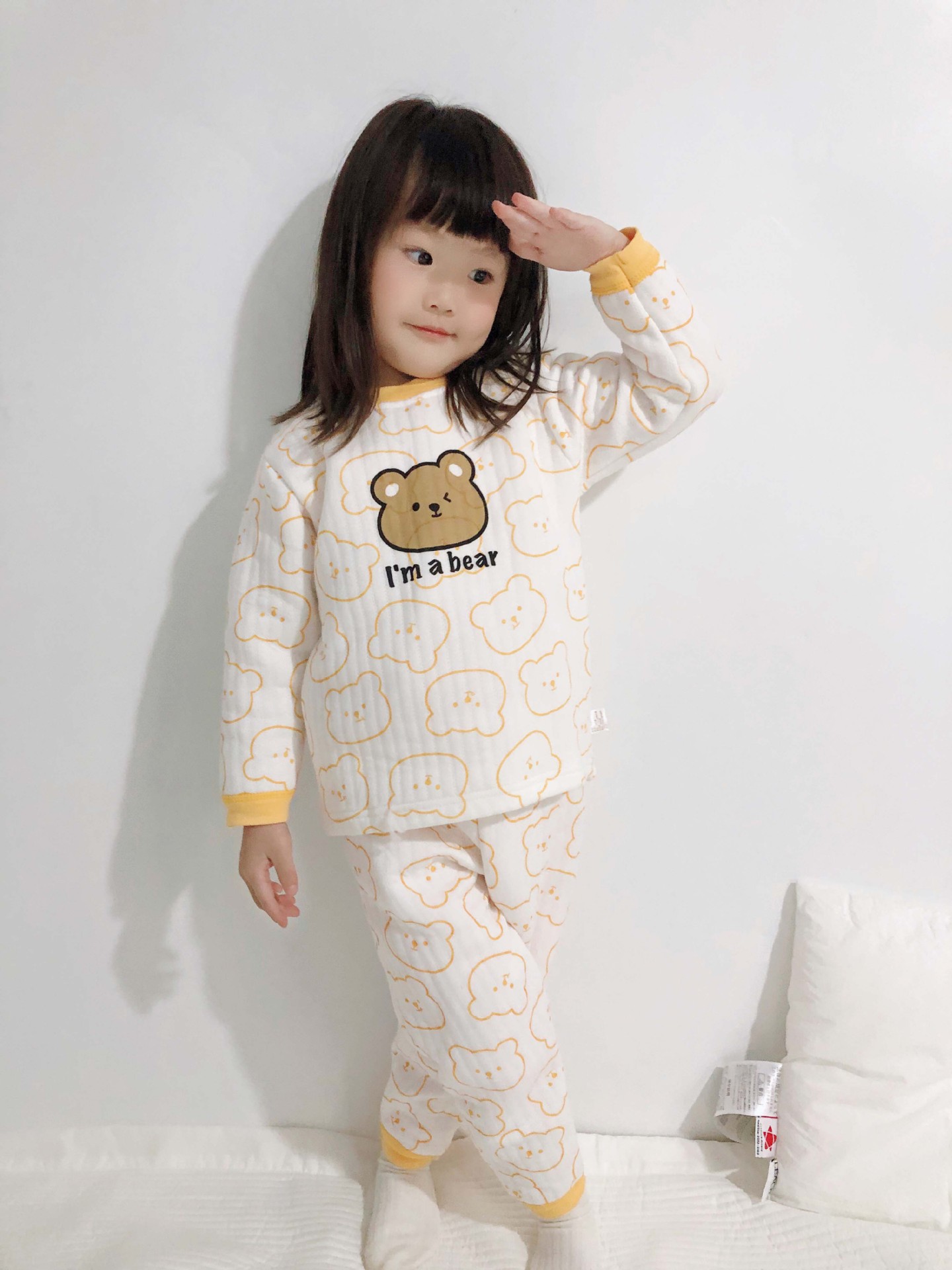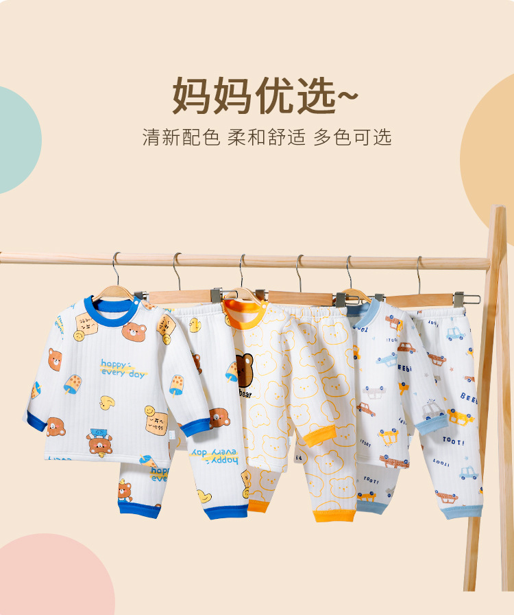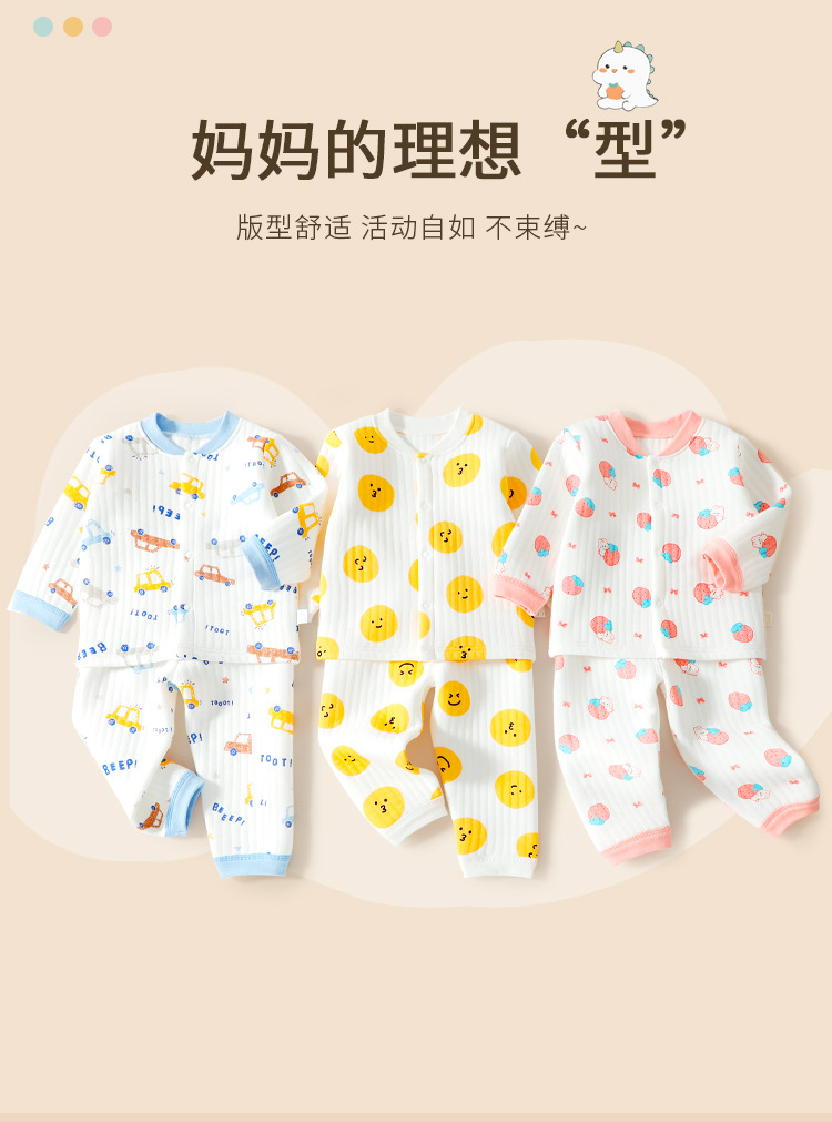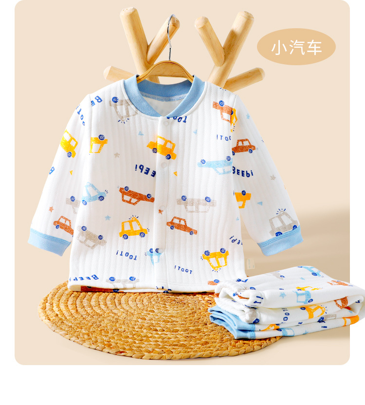 2373+2374 어린이용 순면 A급 삼중 누빔 보온복 세트+긴팔 상의와 긴 바지 두꺼운 유아복