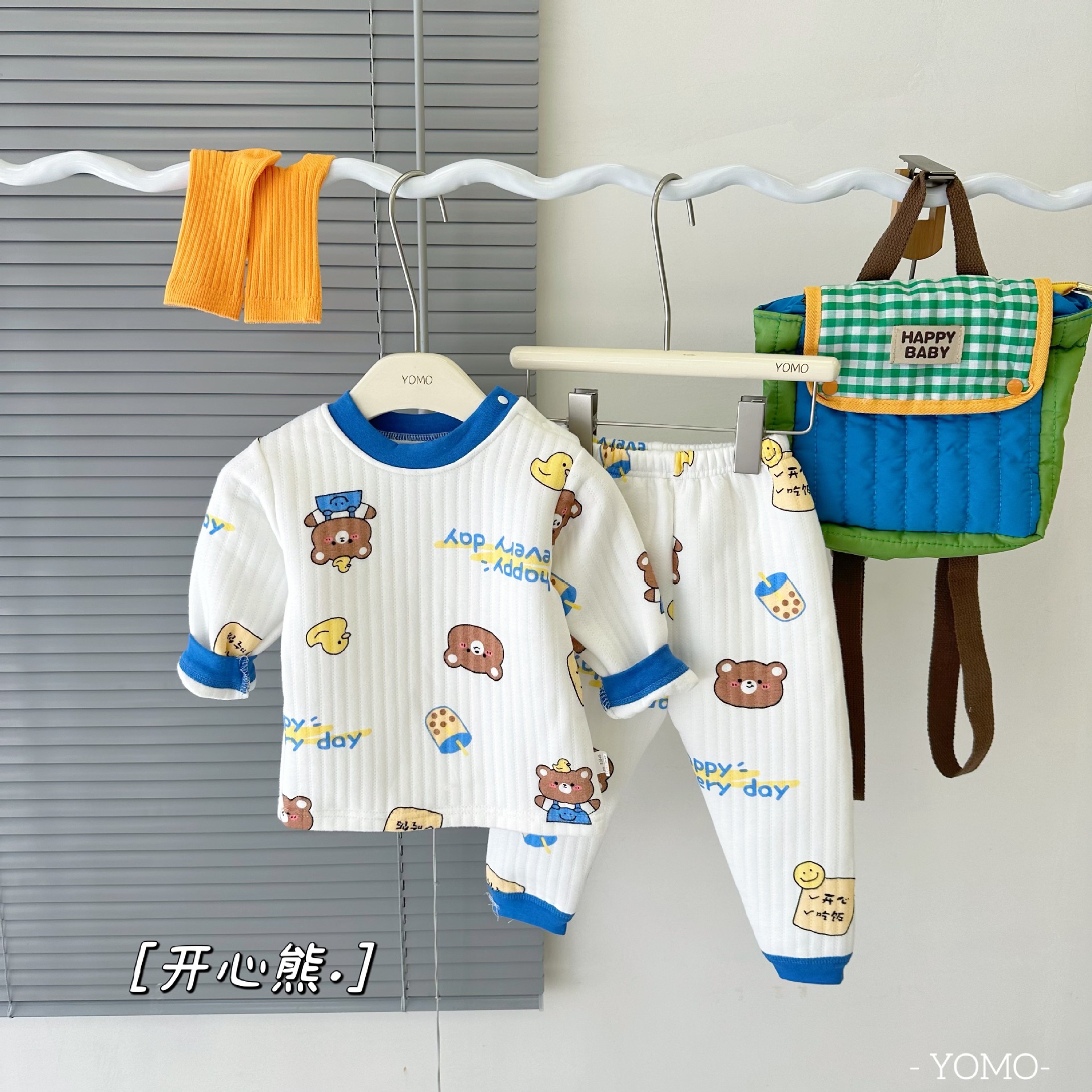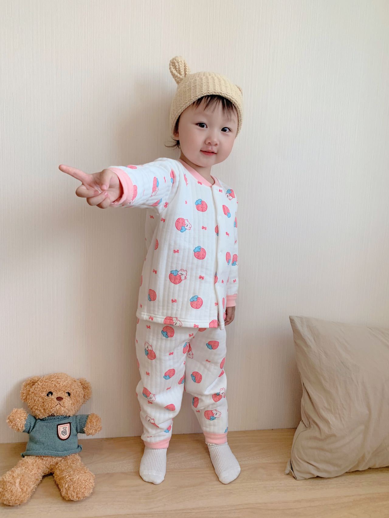 2373+2374 어린이용 순면 A급 삼중 누빔 보온복 세트+긴팔 상의와 긴 바지 두꺼운 유아복스토어 가기