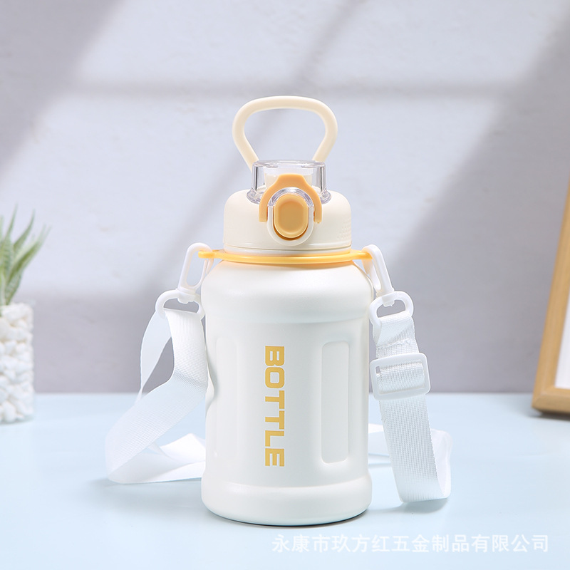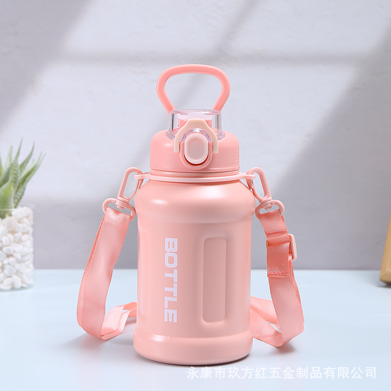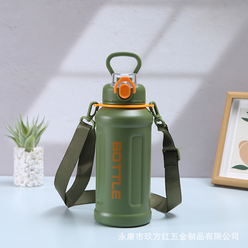 새로운 316 스테인레스 스틸 절연 컵 크로스 바디 학생 휴대용 물 컵 대용량 야외 스포츠 등산 물병스토어 가기