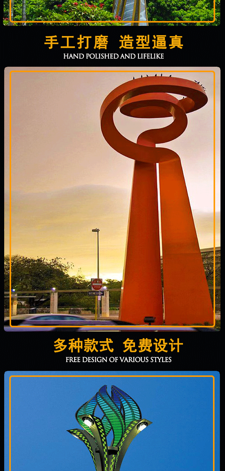 대형 스테인레스 스틸 영적 요새 조각 명승지 도시 랜드 마크 건물 스테인레스 스틸 조각 표지판 가이드 플레이트스토어 가기