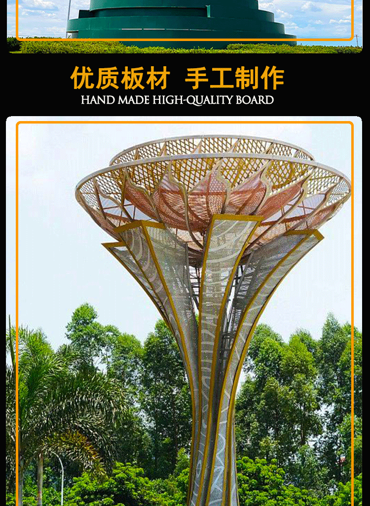 대형 스테인레스 스틸 영적 요새 조각 명승지 도시 랜드 마크 건물 스테인레스 스틸 조각 표지판 가이드 플레이트