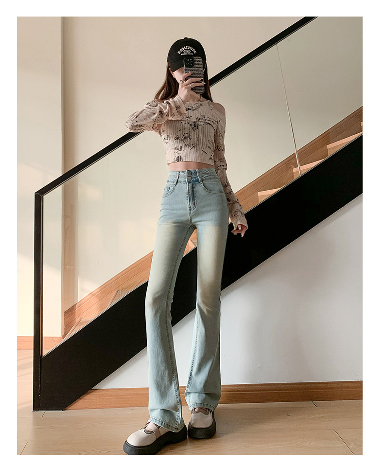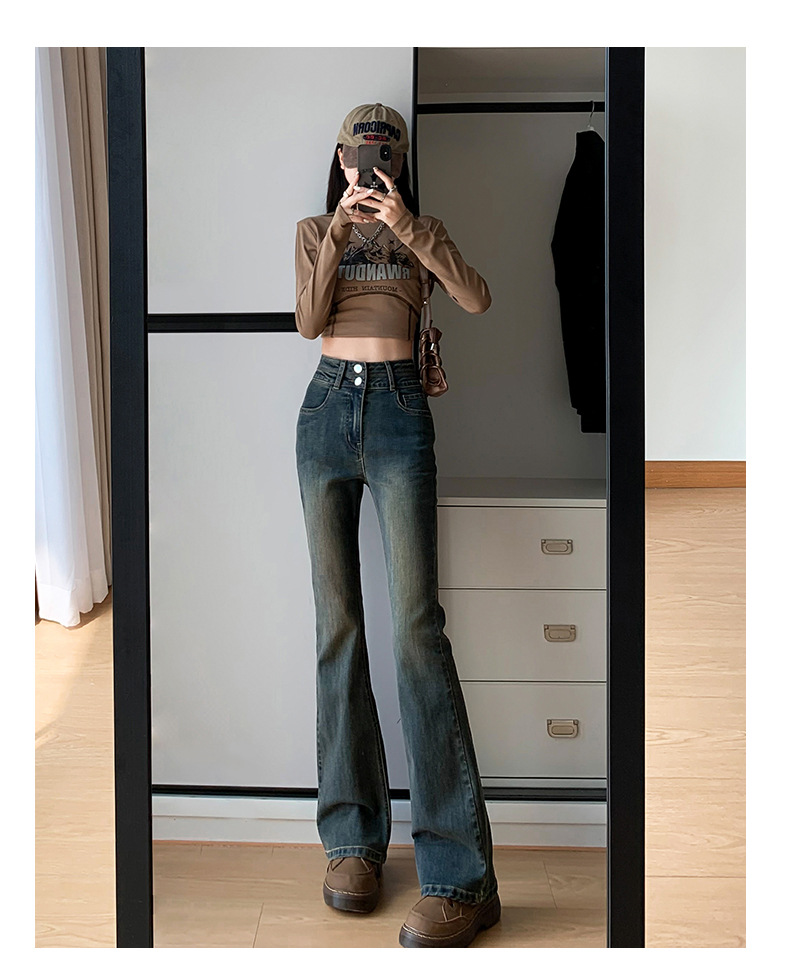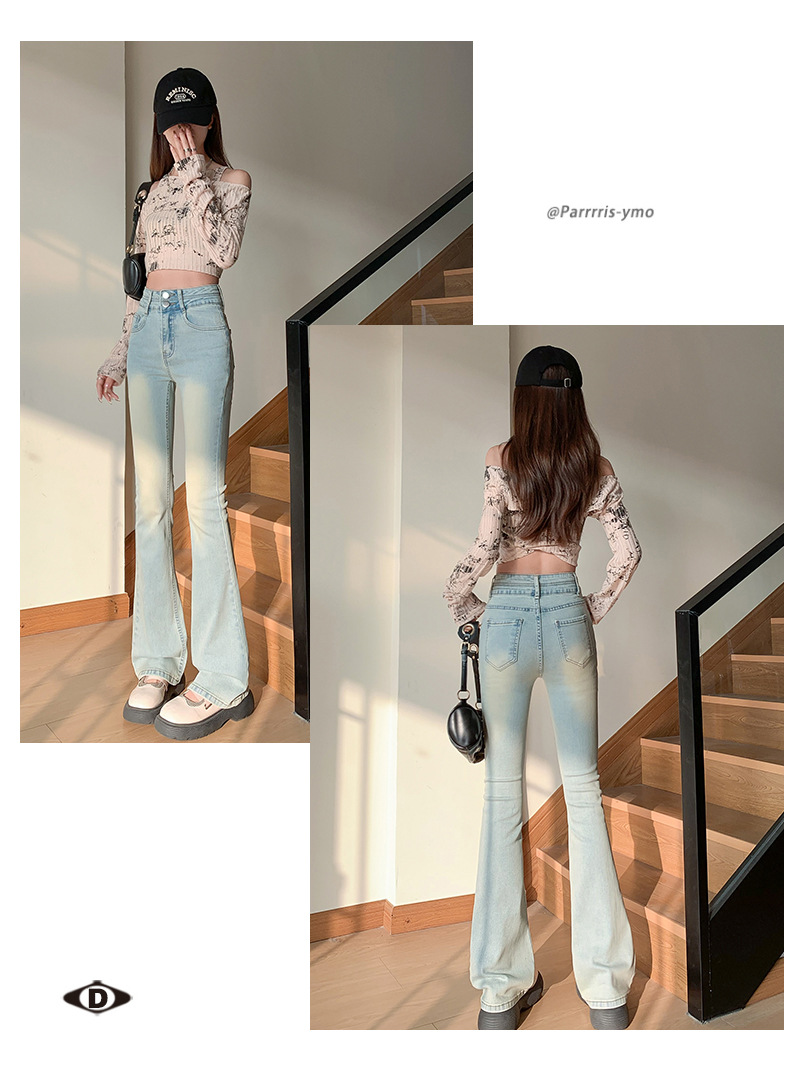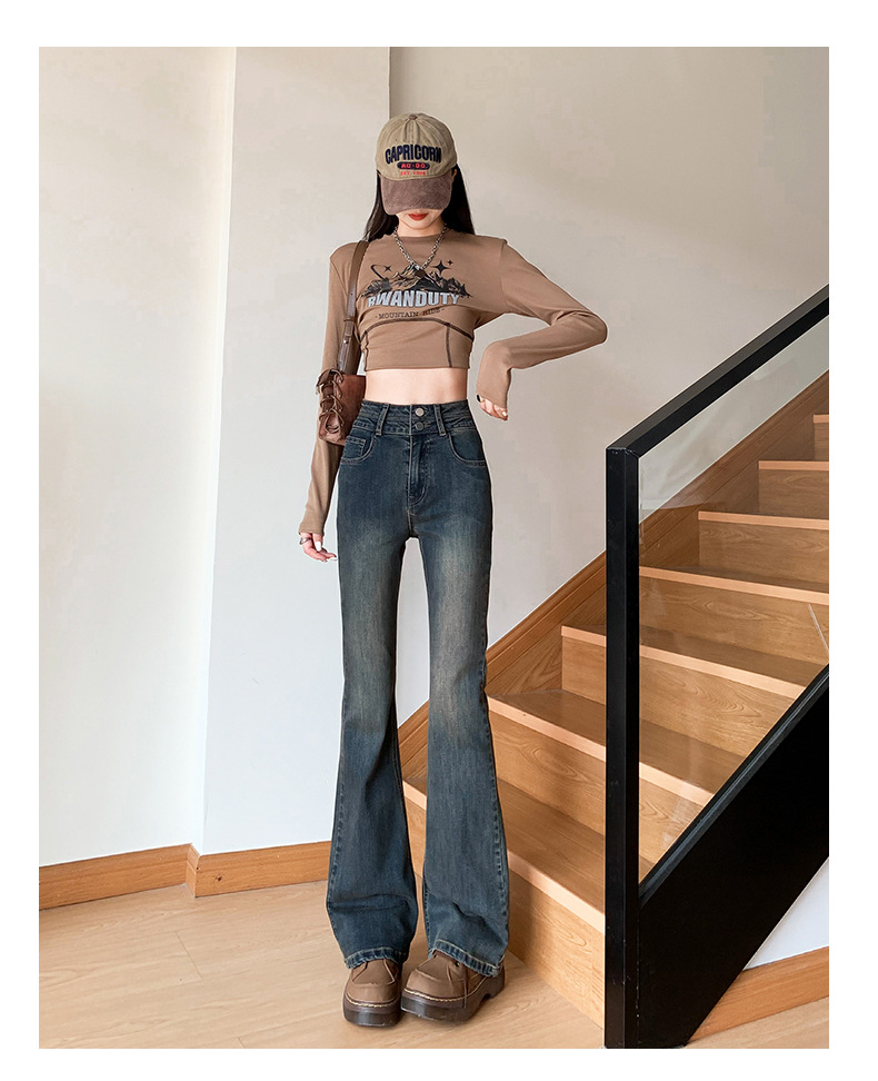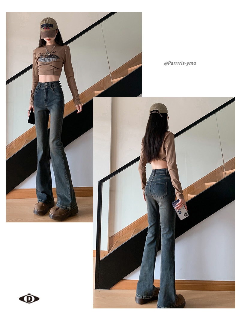 하이웨이스트 마이크로 플레어 시멘트 그레이 데님 팬츠 여성용 2025 가을 겨울 신상 하이웨이스트 루즈핏 슬림 엘라스틱 마이크로 플레어 팬츠스토어 가기