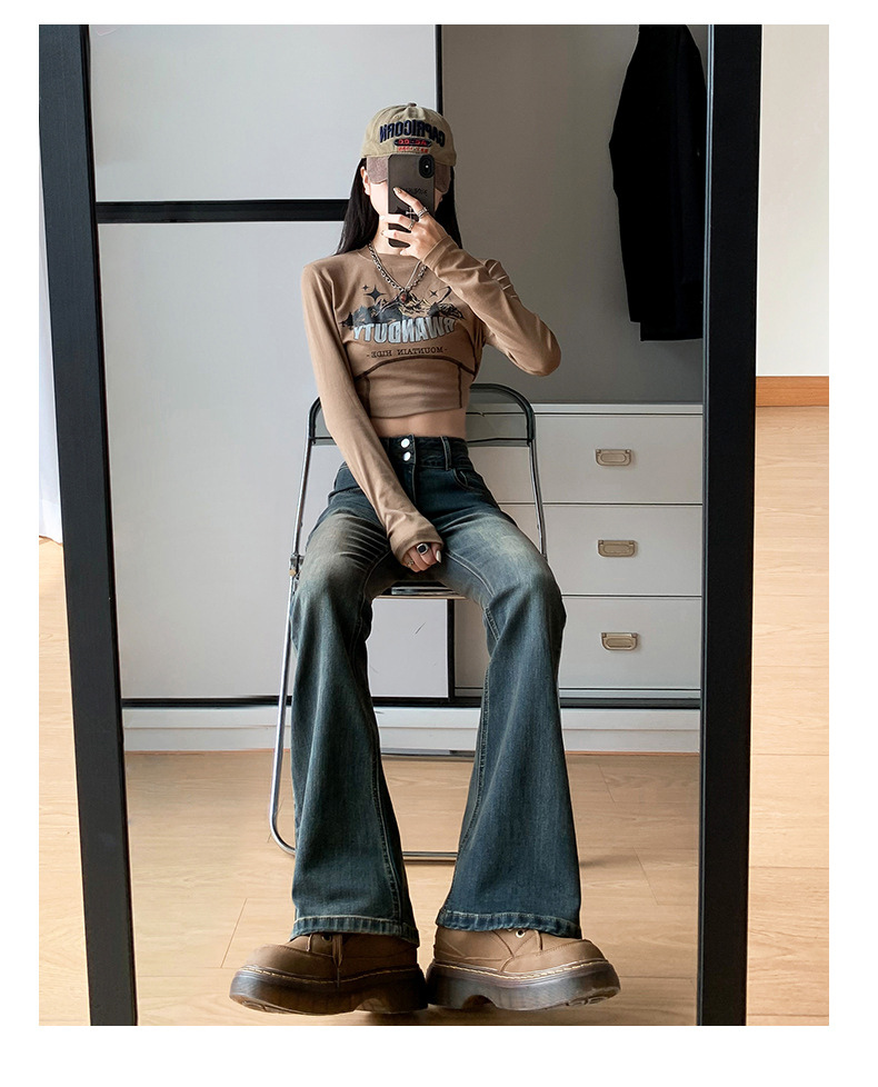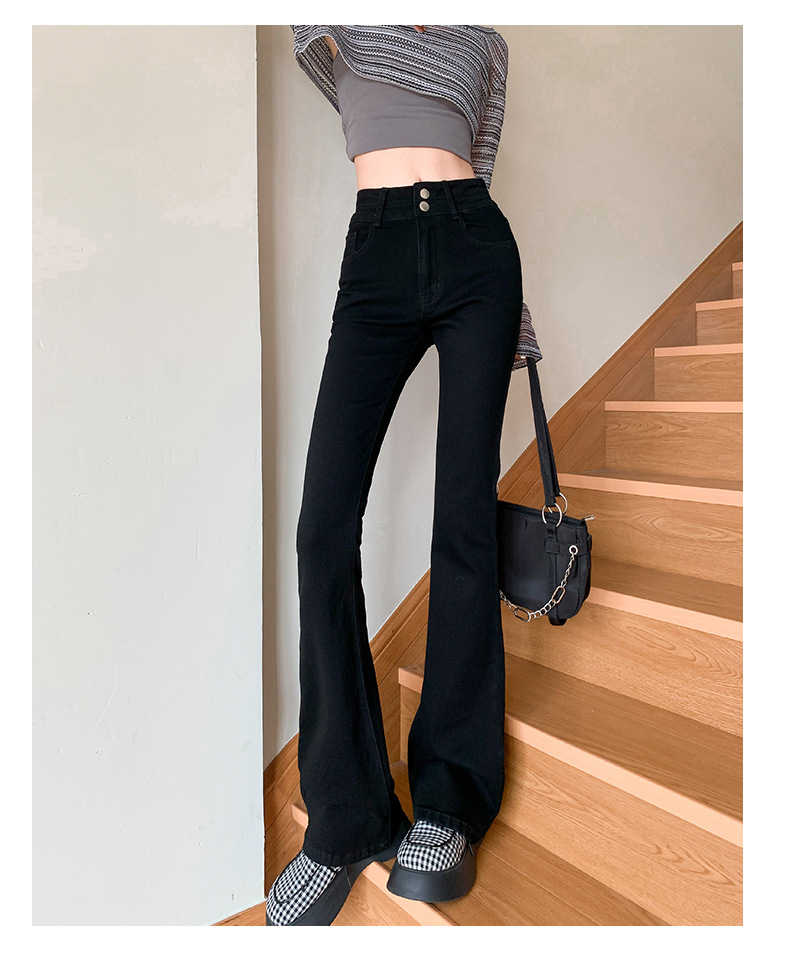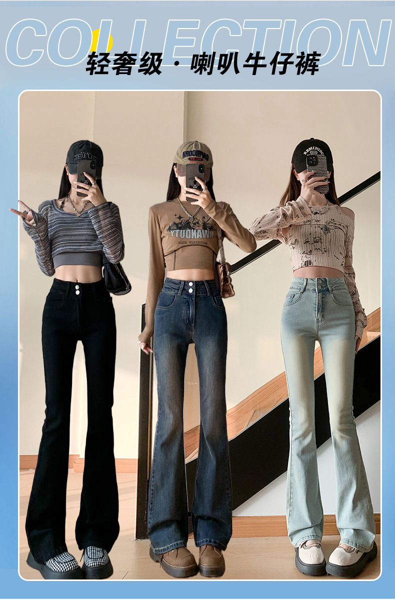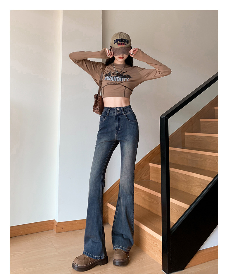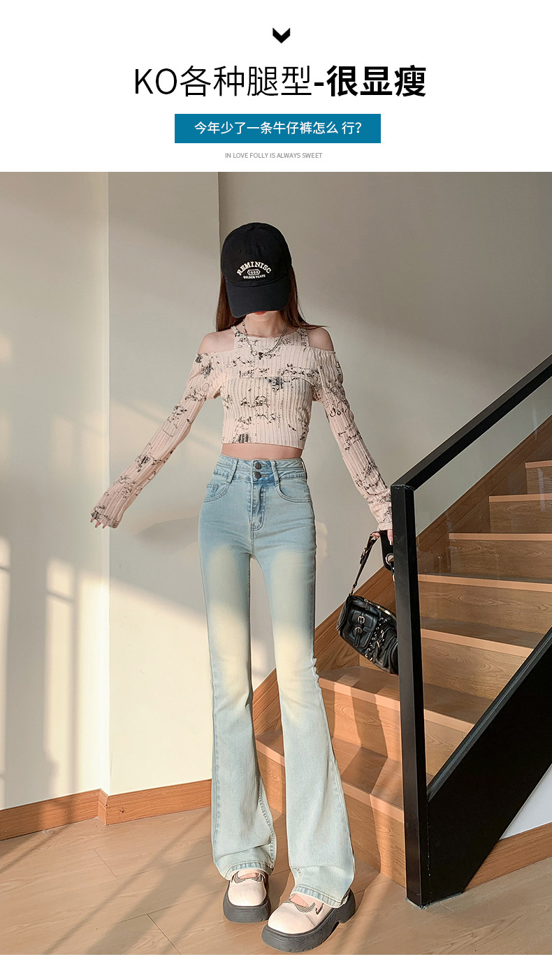 하이웨이스트 마이크로 플레어 시멘트 그레이 데님 팬츠 여성용 2025 가을 겨울 신상 하이웨이스트 루즈핏 슬림 엘라스틱 마이크로 플레어 팬츠스토어 가기