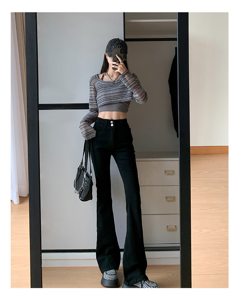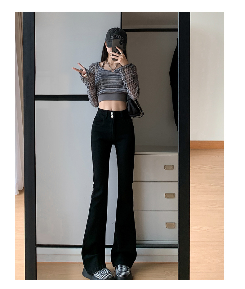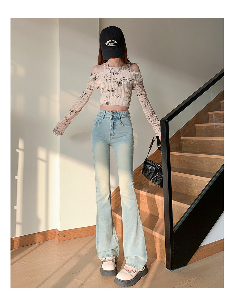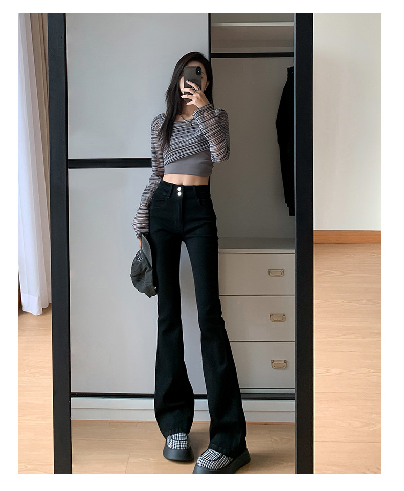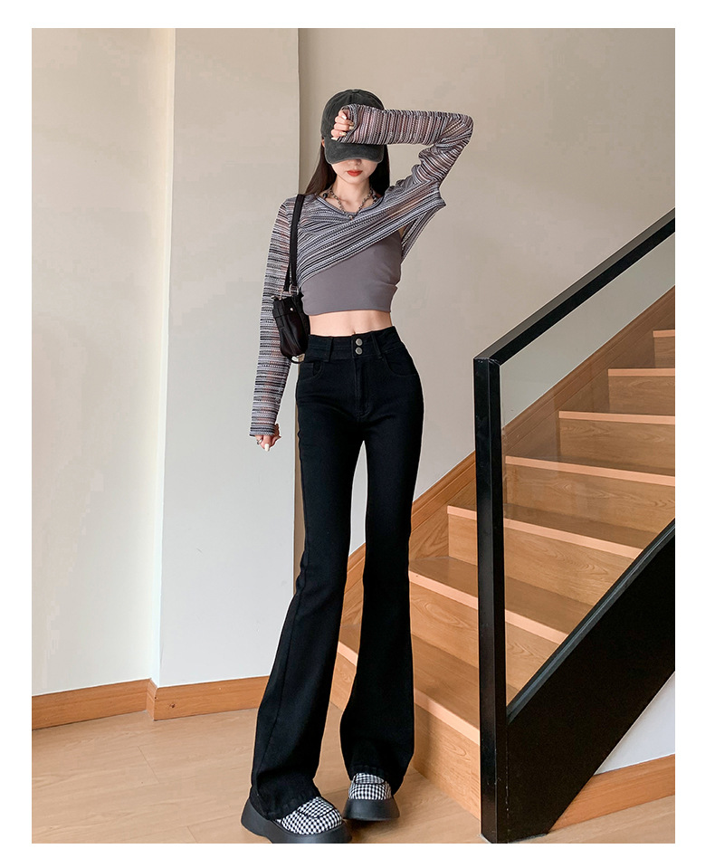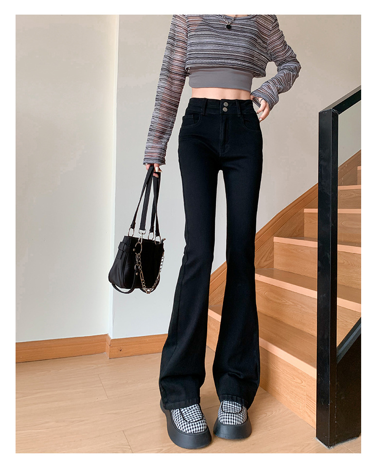 하이웨이스트 마이크로 플레어 시멘트 그레이 데님 팬츠 여성용 2025 가을 겨울 신상 하이웨이스트 루즈핏 슬림 엘라스틱 마이크로 플레어 팬츠스토어 가기