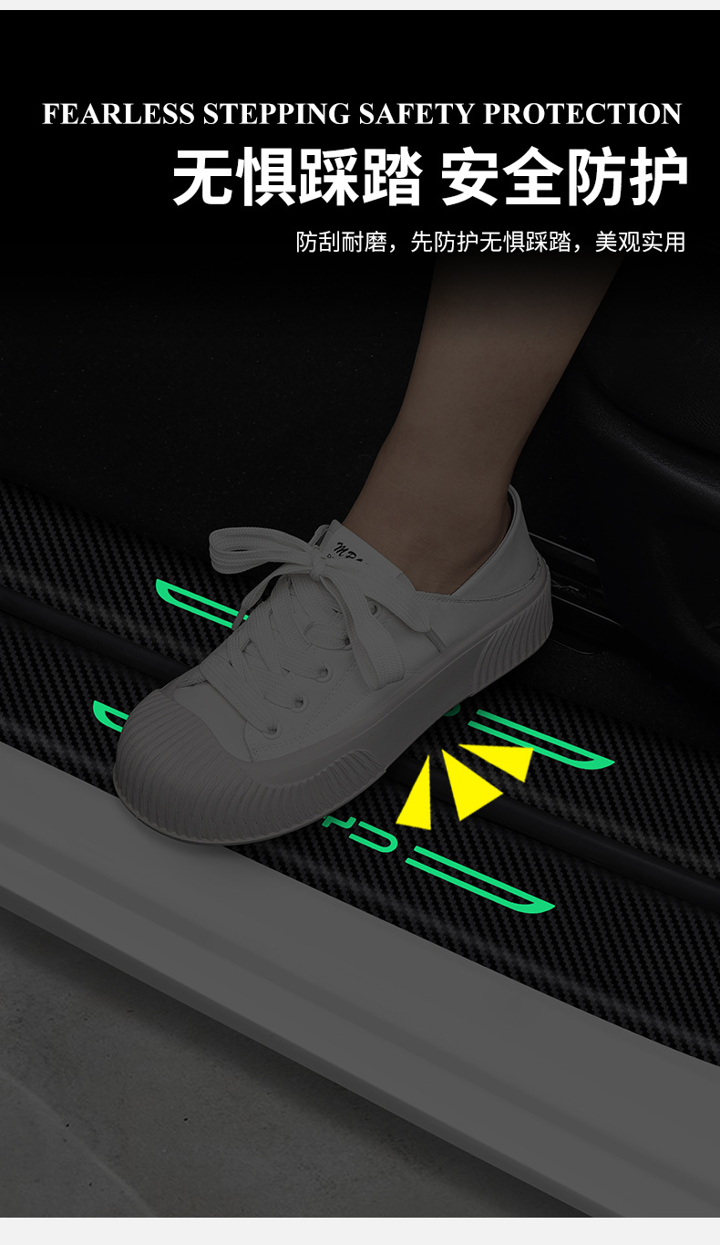 자동차 빛나는 문턱 스트립 대나무 진 환영 페달 보호 스트립 탄소 섬유 패턴 가죽 장식 안티 스크래치 안티 스텝 스티커스토어 가기