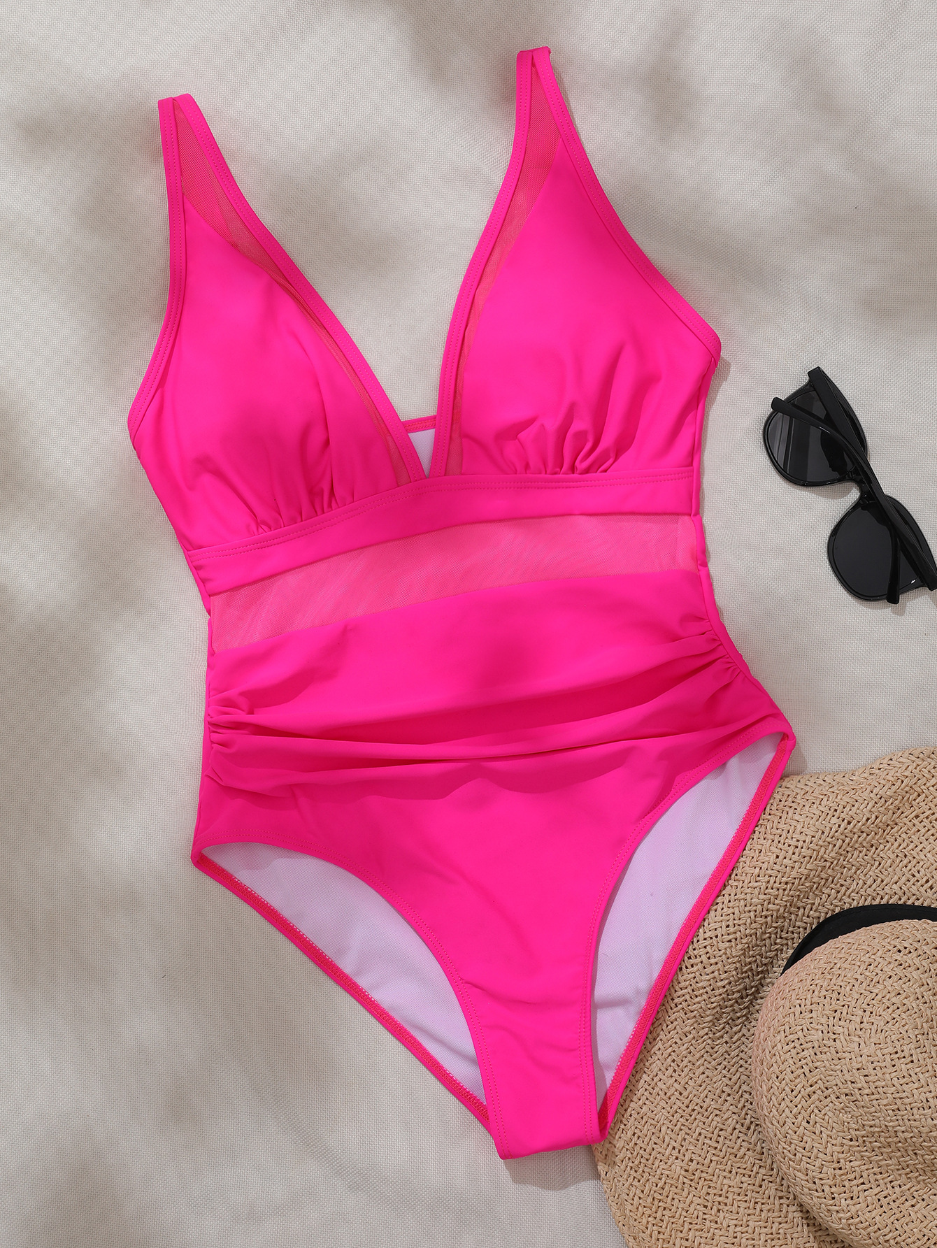 2025 새로운 스타일의 비키니, 유럽과 미국의 해외 무역, 단색 메쉬, 등이 없는 섹시한 비키니 원피스 수영복스토어 가기