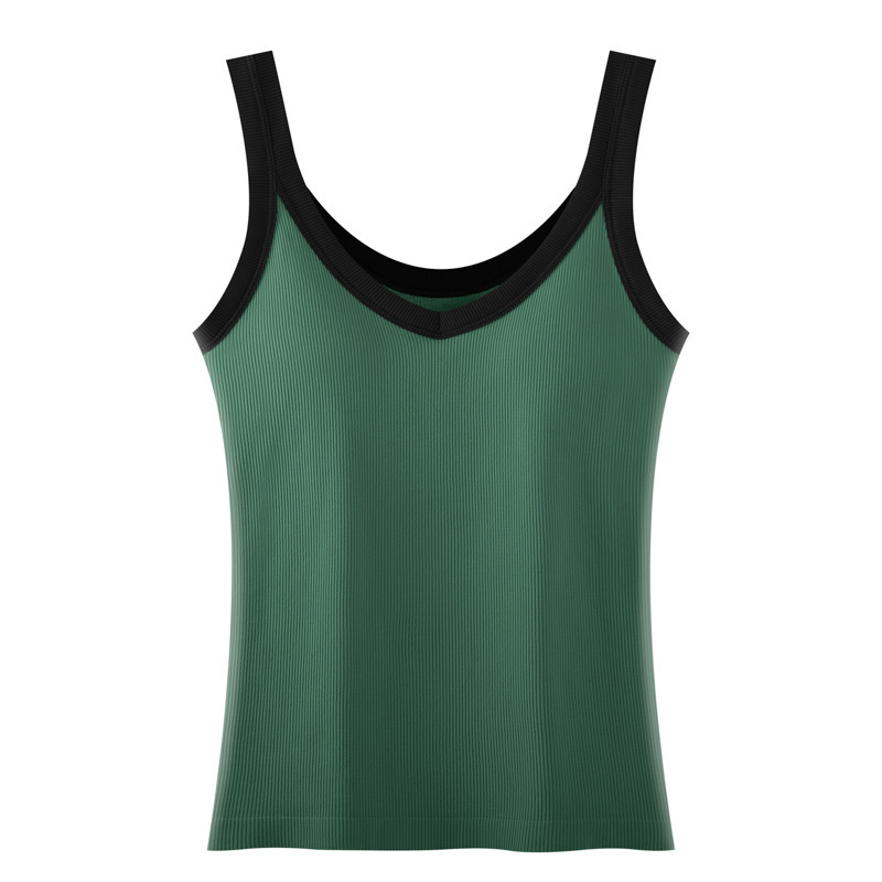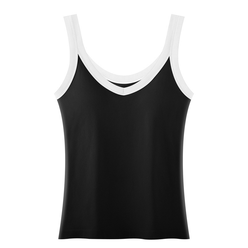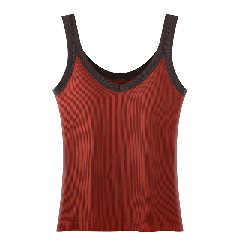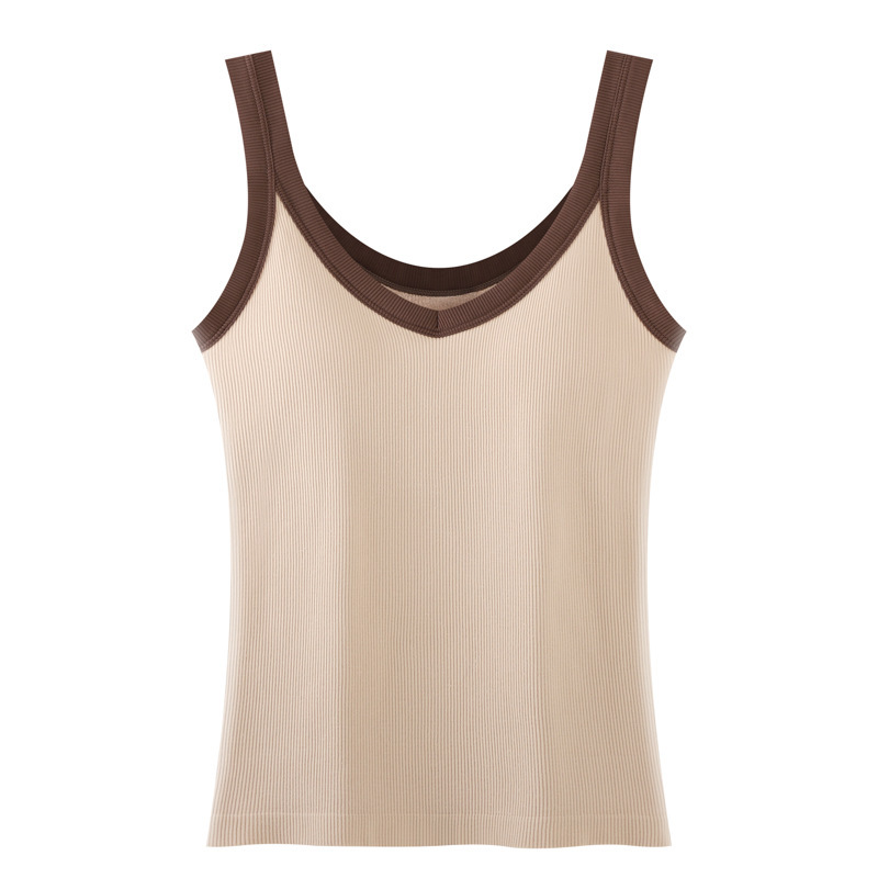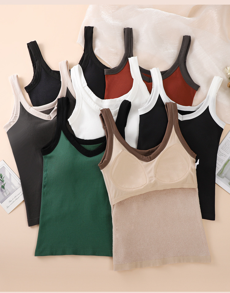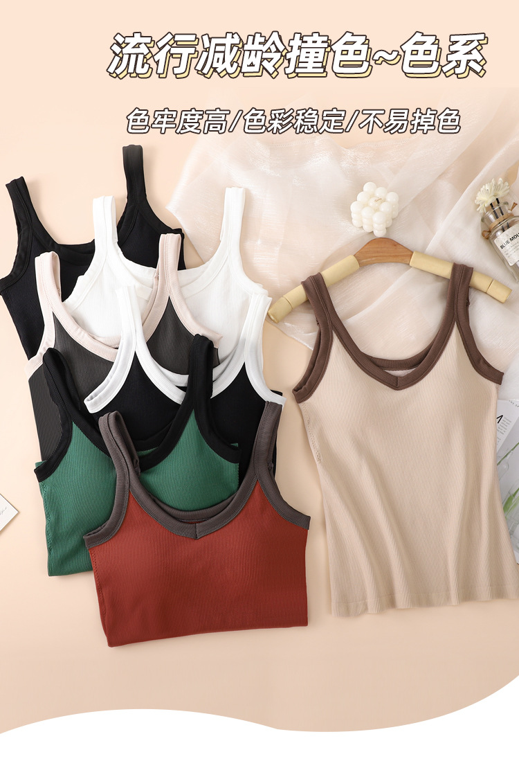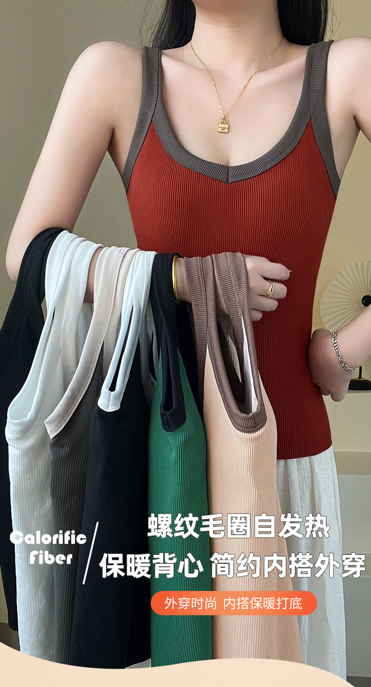 가을 겨울 여성용 보온 조끼와 가슴 패드가 있는 벨벳 바닥 캐미솔, 슬림핏 대비 컬러 순면 탑스토어 가기