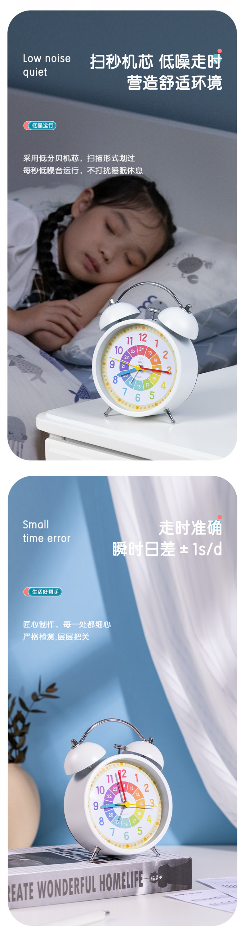 조기 교육 어린이를위한 델리 LE305 포인터 알람 시계 학생을위한 알람 시계 깨우기 유물 음소거 학습 시계