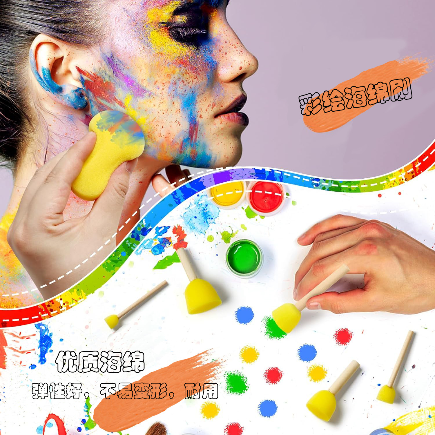 크로스-국경 아마존 스폰지 22 조각 세트 어린이 DIY 그림 낙서 퍼즐 나무 손잡이 스폰지 브러쉬 인감 도매스토어 가기