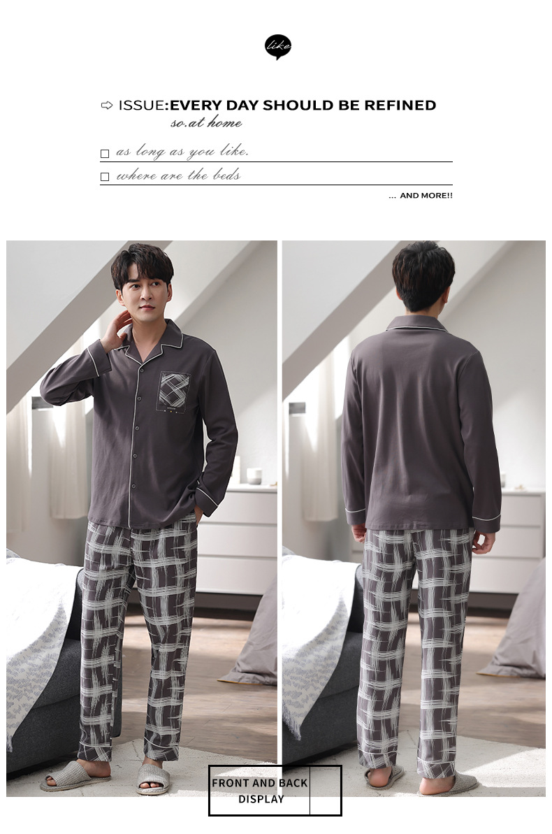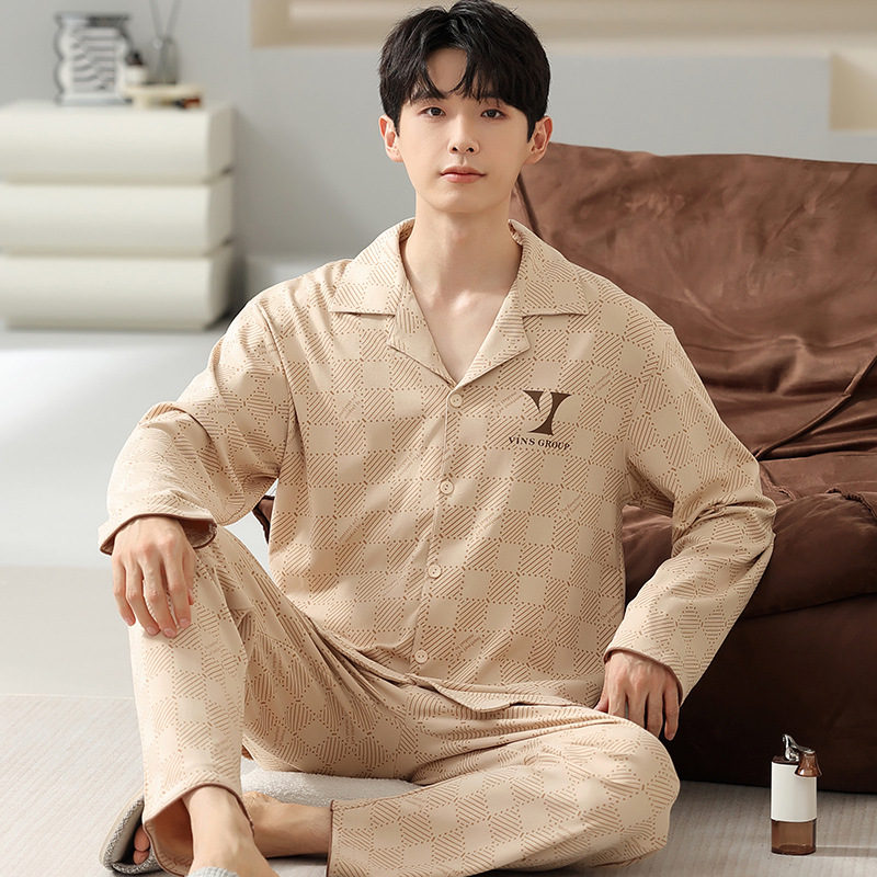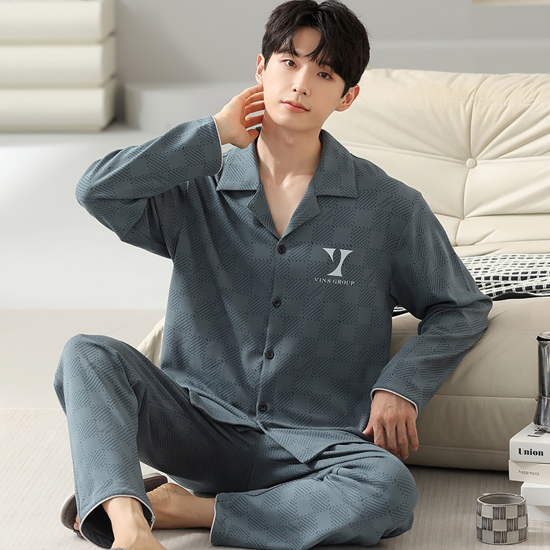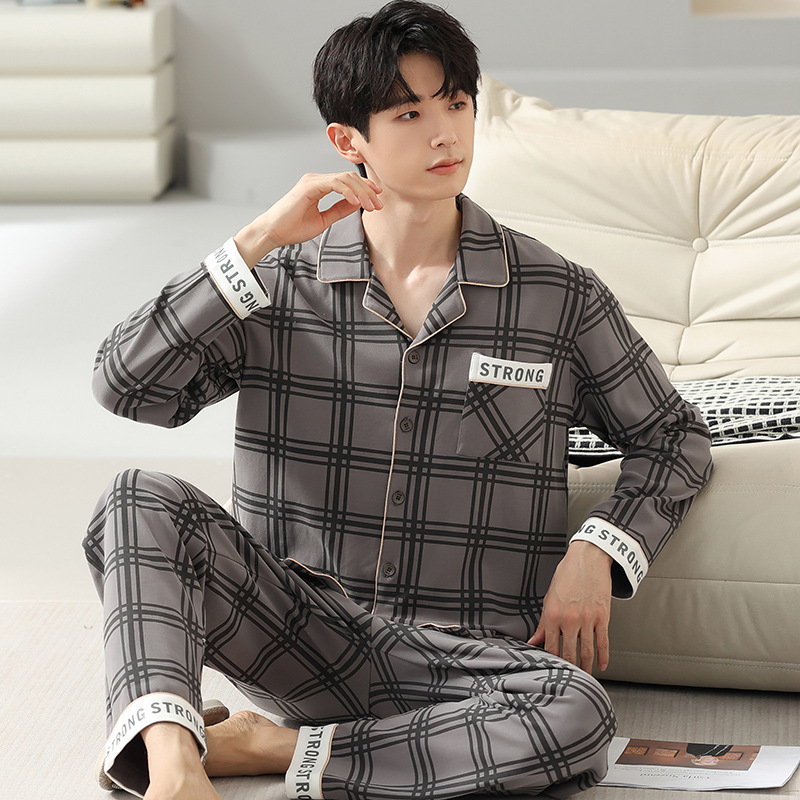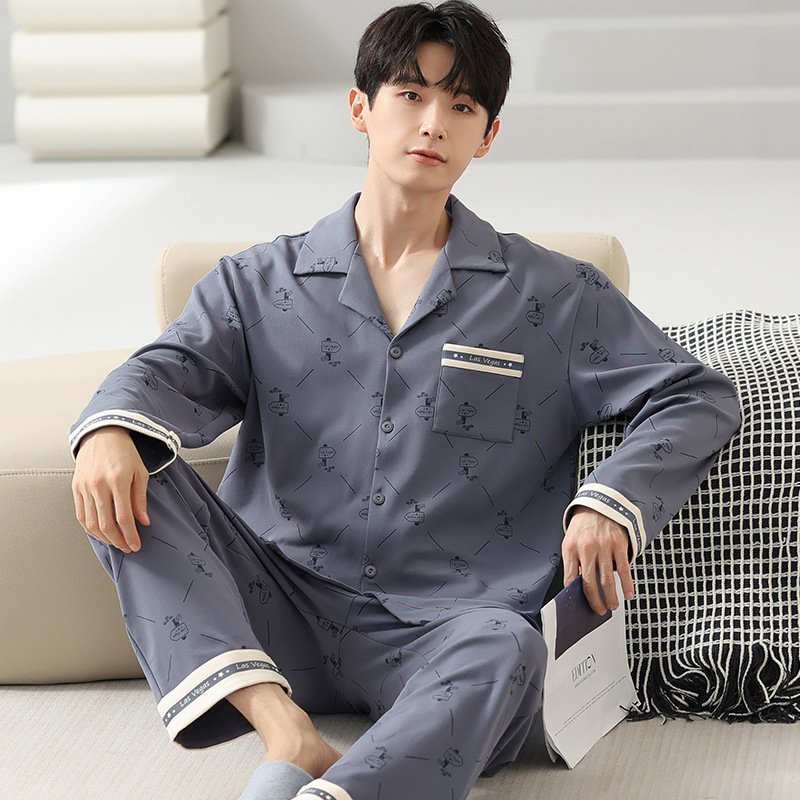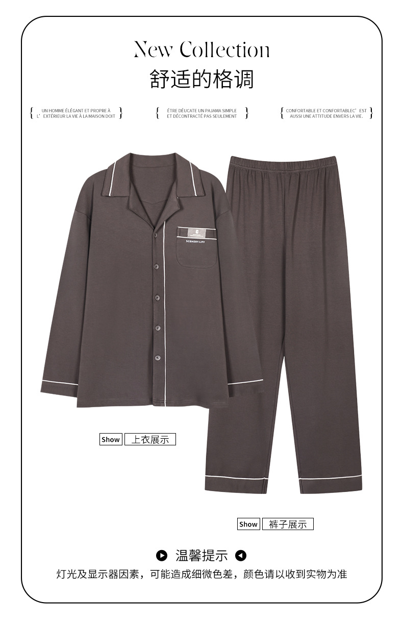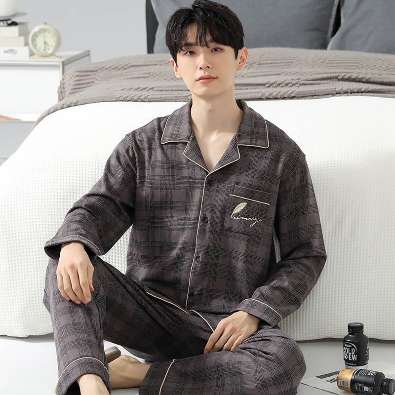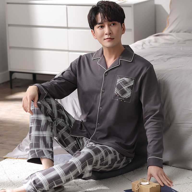 [순면] 가디건 라펠 남성 잠옷 가을과 겨울 새로운 플러스 사이즈 가정 옷 긴 소매 바지 겉옷 세트스토어 가기