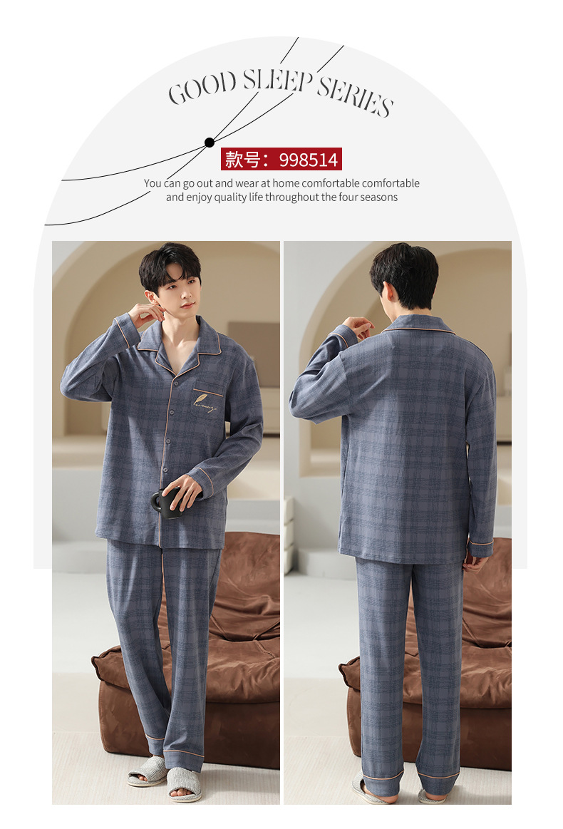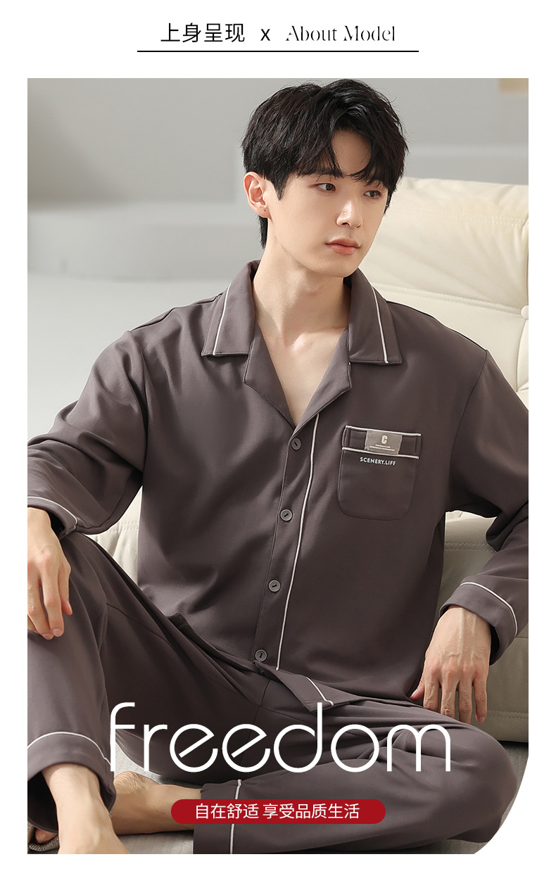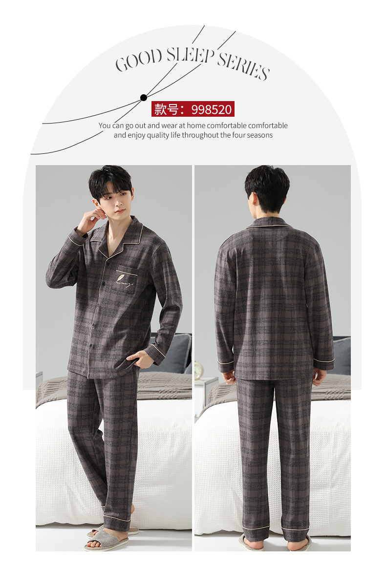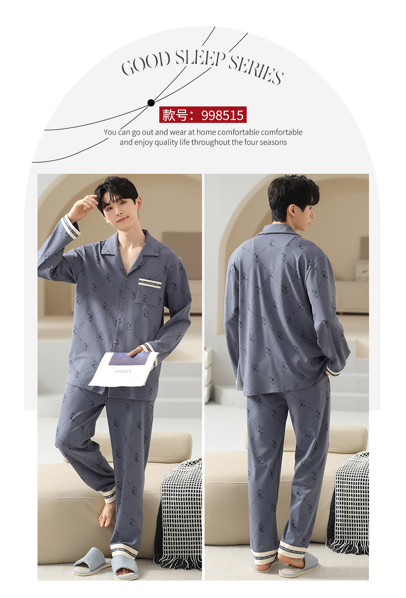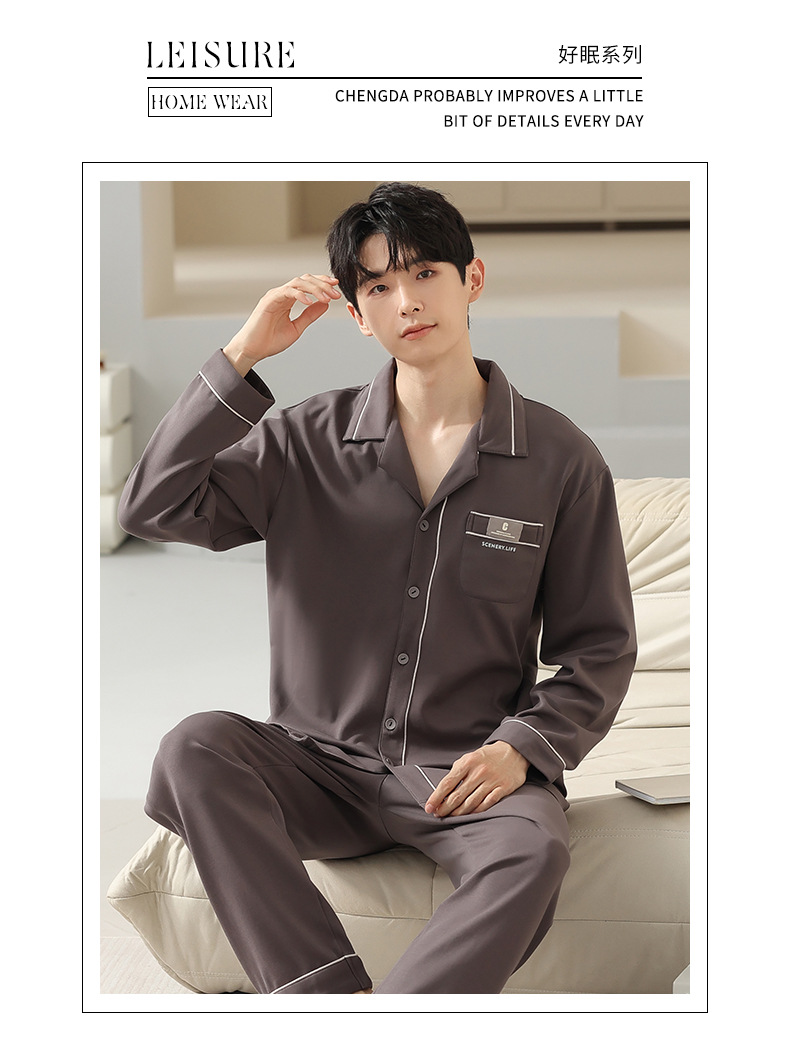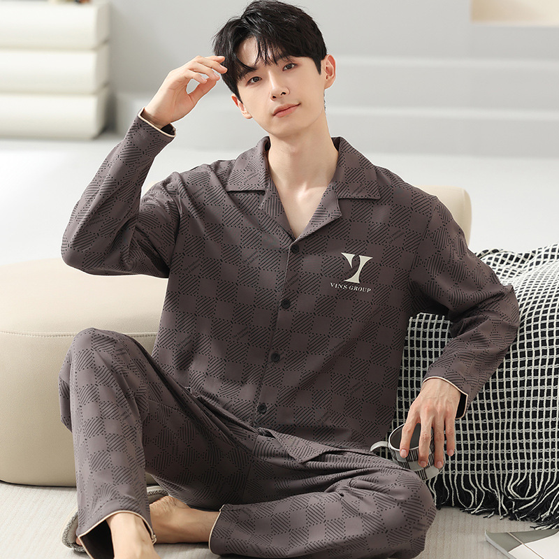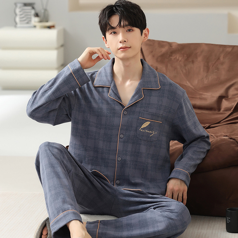 [순면] 가디건 라펠 남성 잠옷 가을과 겨울 새로운 플러스 사이즈 가정 옷 긴 소매 바지 겉옷 세트스토어 가기