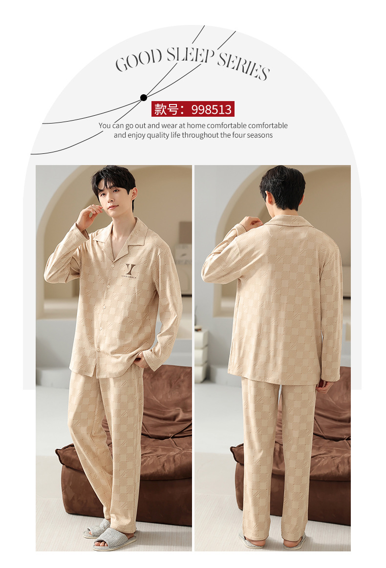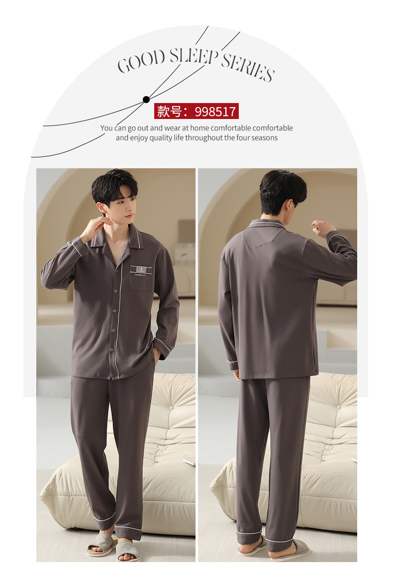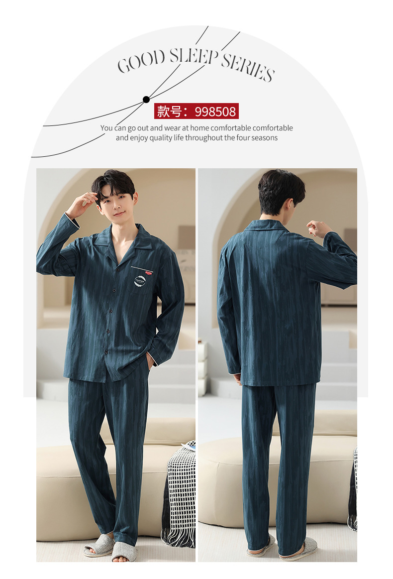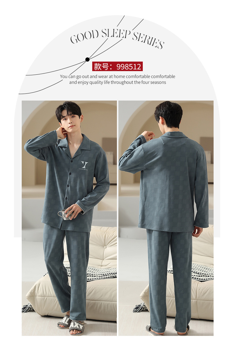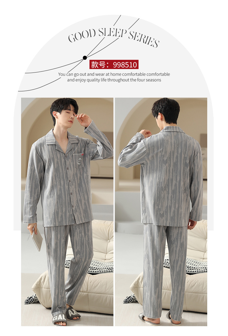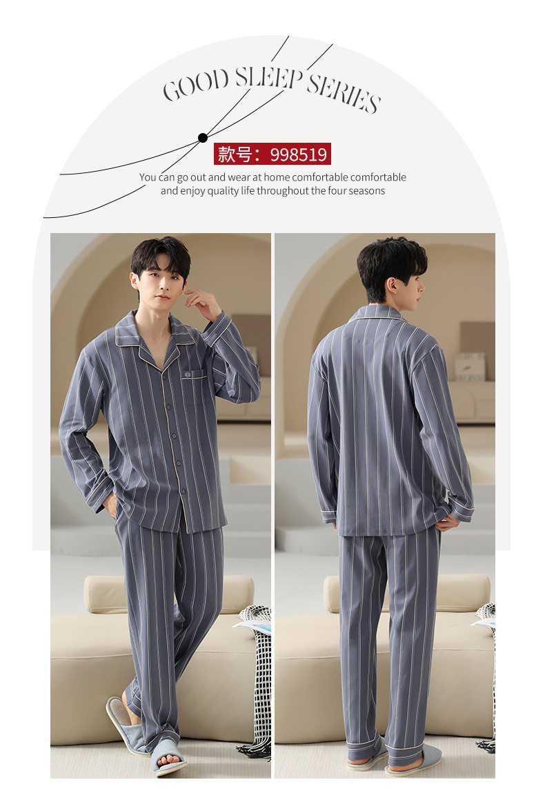 [순면] 가디건 라펠 남성 잠옷 가을과 겨울 새로운 플러스 사이즈 가정 옷 긴 소매 바지 겉옷 세트스토어 가기