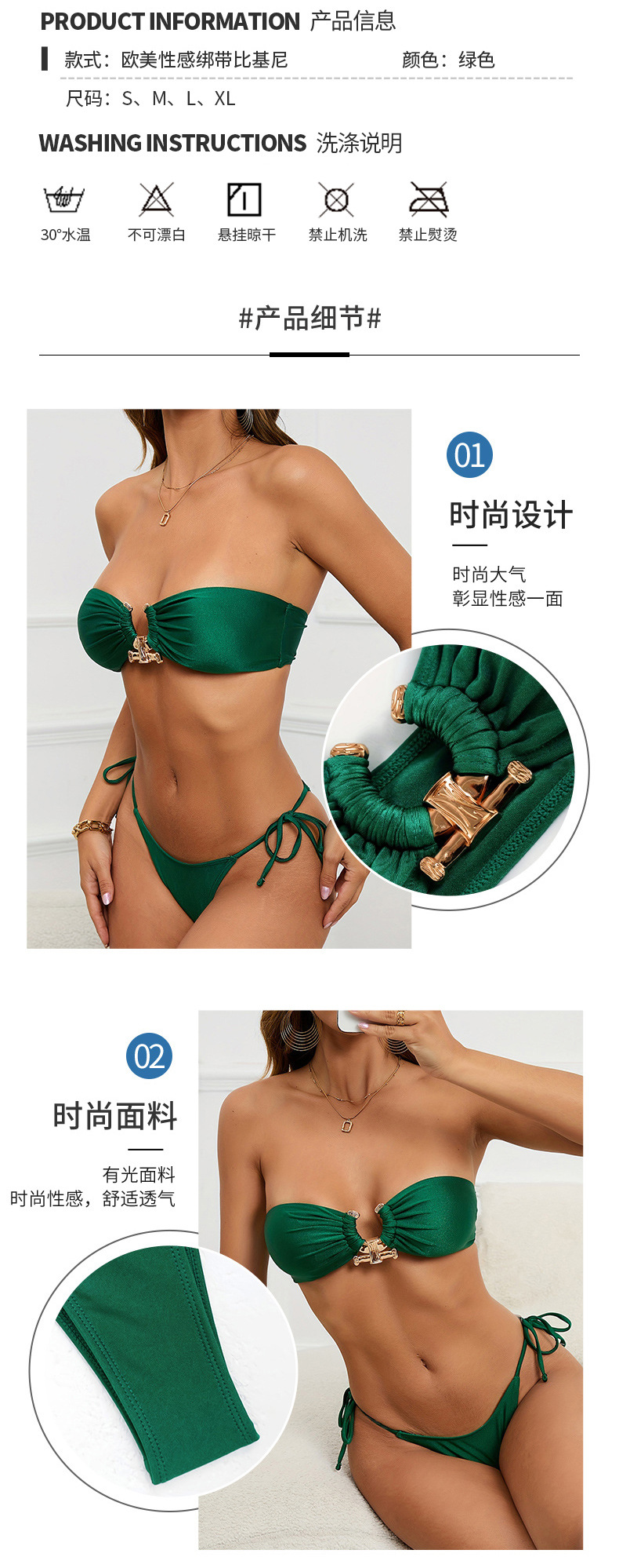 2024 새로운 유럽과 미국의 대외 무역 라이트 패브릭 섹시한 비키니 분할 수영복 끈이없는 크로스 보더 아마존스토어 가기