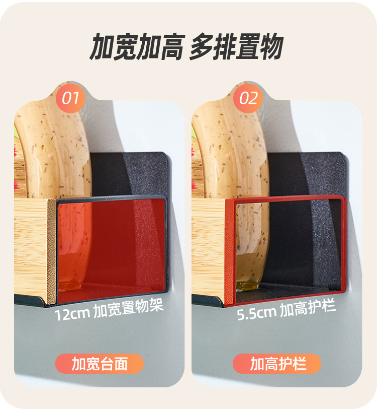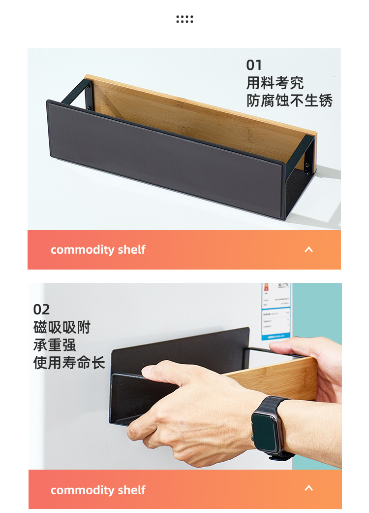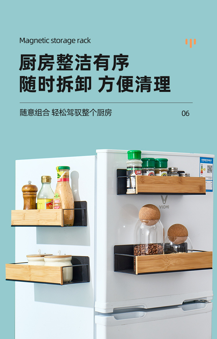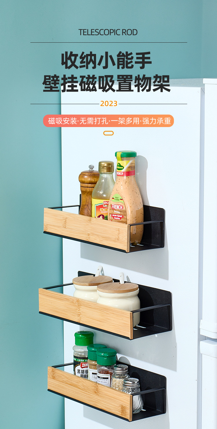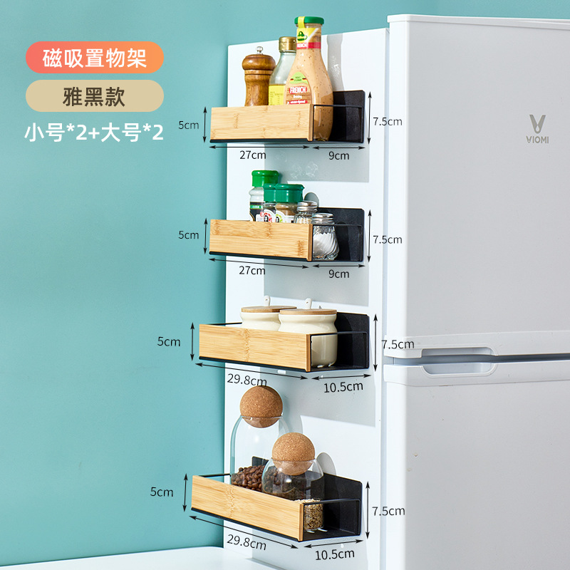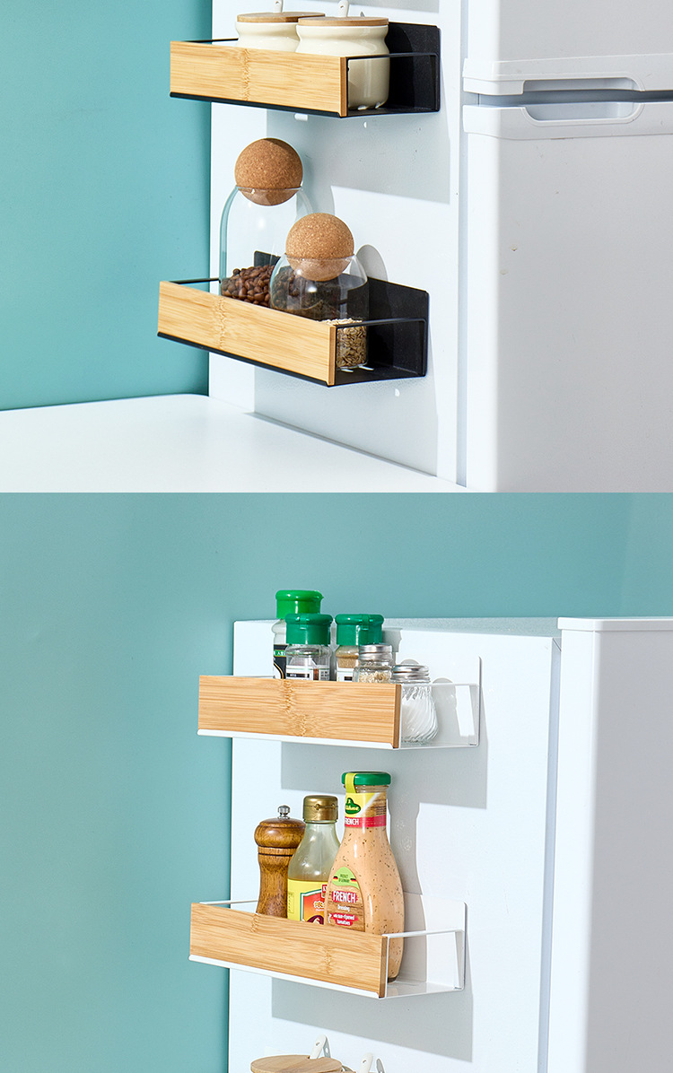 크로스보더 주방 벽걸이형 대나무 수납 선반 자석식 냉장고 선반 측면 부착형 수납 선반 무타공 조미료 선반 박스