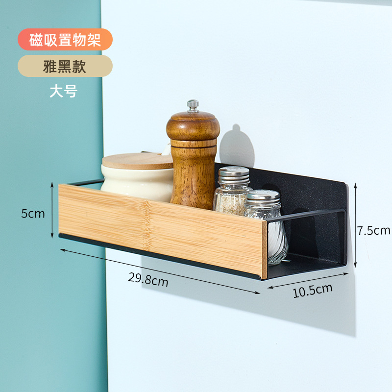 크로스보더 주방 벽걸이형 대나무 수납 선반 자석식 냉장고 선반 측면 부착형 수납 선반 무타공 조미료 선반 박스스토어 가기