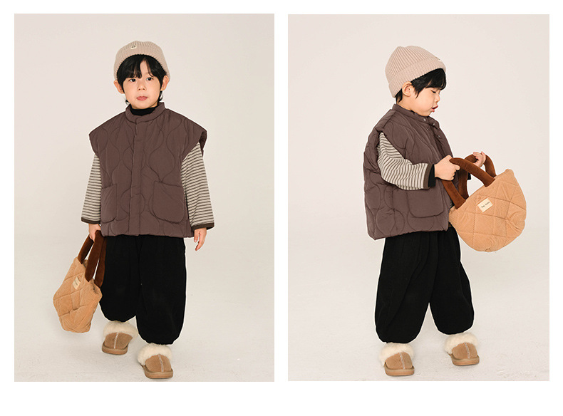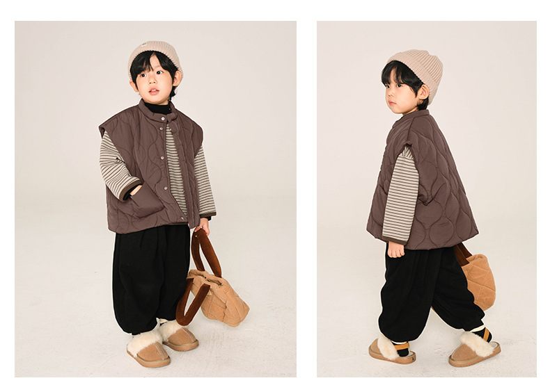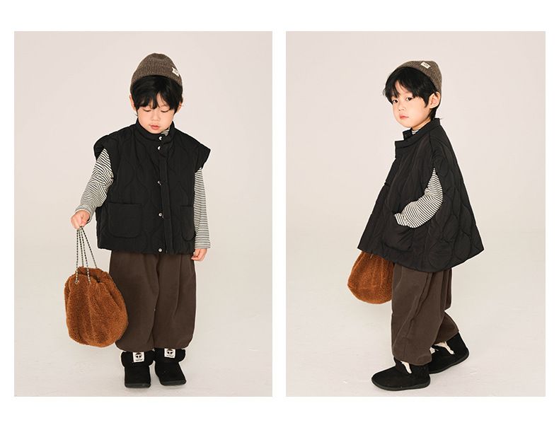 창궈 의류 남아 조끼 겨울옷 아동용 한국 스타일 아우터 조끼 중소형 아동용 두꺼운 보온 다용도 조끼