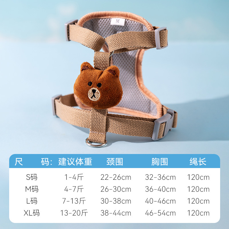 가을과 겨울 코듀로이 개 견인 로프 입체 만화 고양이 외출 방지 가슴 스트랩 애완 동물 개 체인스토어 가기
