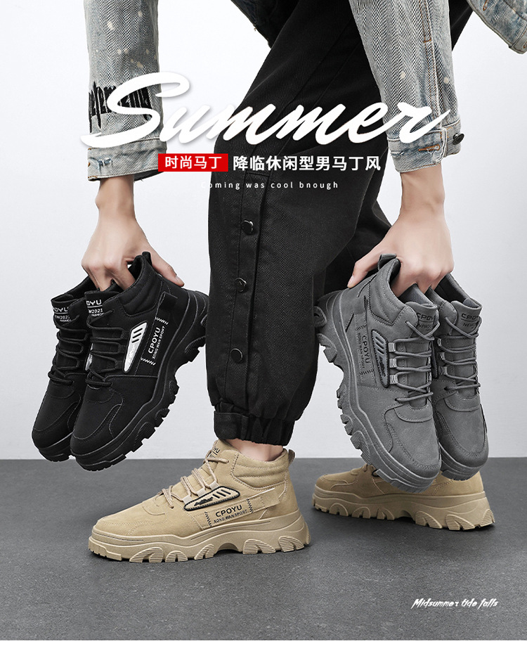 봄 남성 신발 하이 탑 툴링 신발 남성 트렌디 올매치 두꺼운 밑창 미끄럼 방지 작업 사이트 노동 보호 신발 마틴 남성 부츠