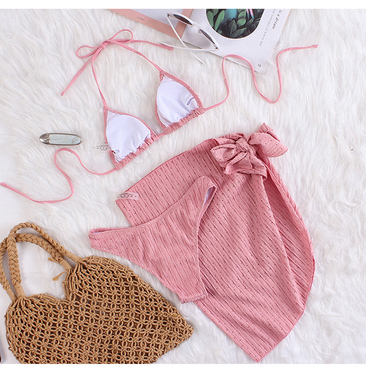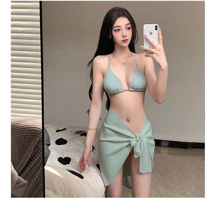 2024 새로운 비키니 여성용 스플릿 솔리드 컬러 3 피스 수영복 스파이스 걸스 유럽과 미국 섹시 심플 온천 수영복스토어 가기