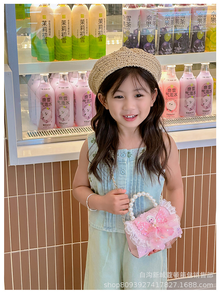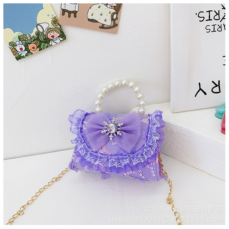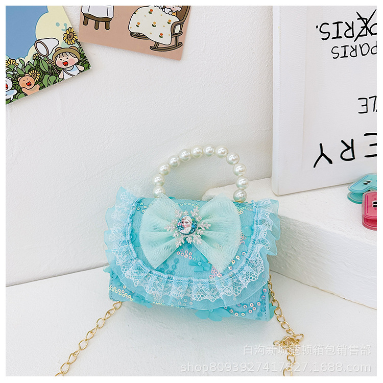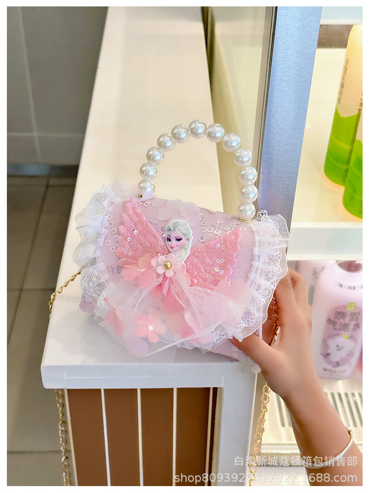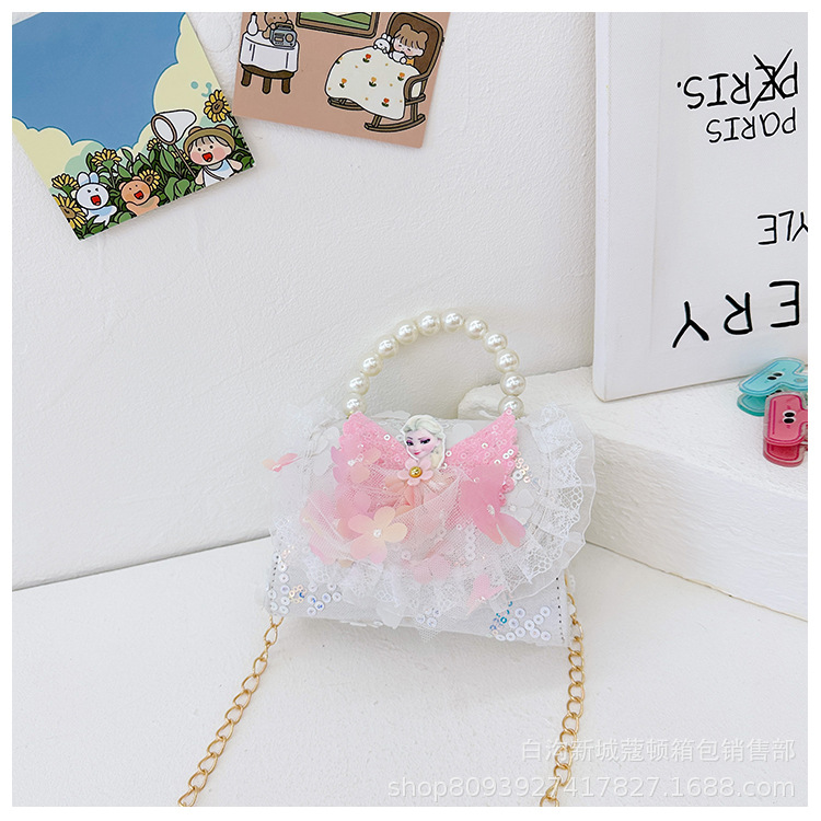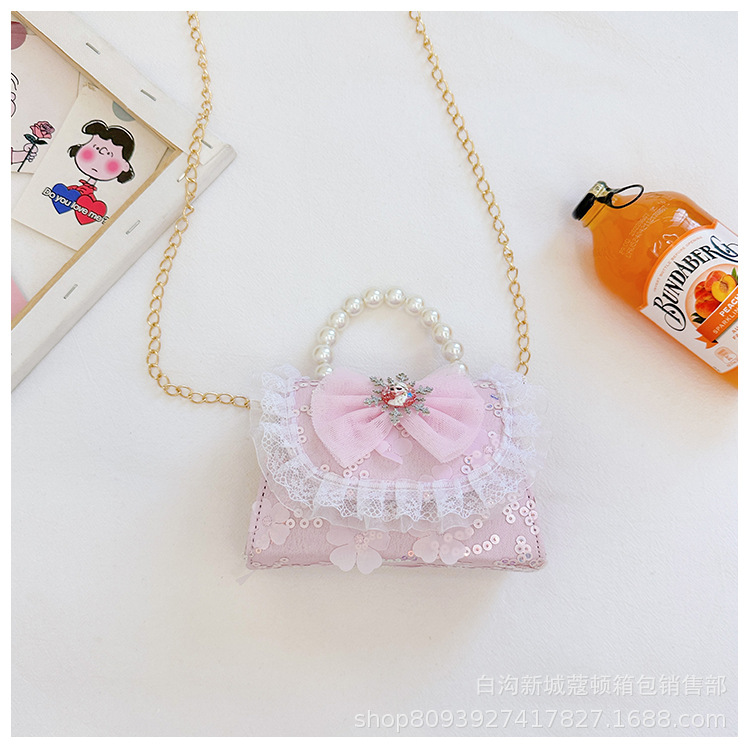 어린이 가방 패션 공주 진주 핸드백 귀여운 소녀 동전 지갑 서양식 레이스 어깨 메신저 가방스토어 가기