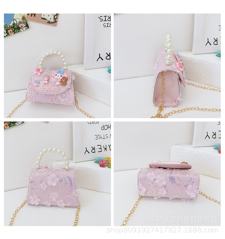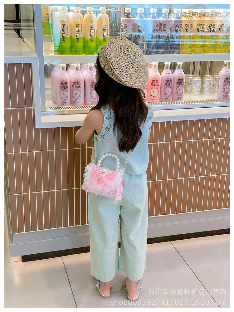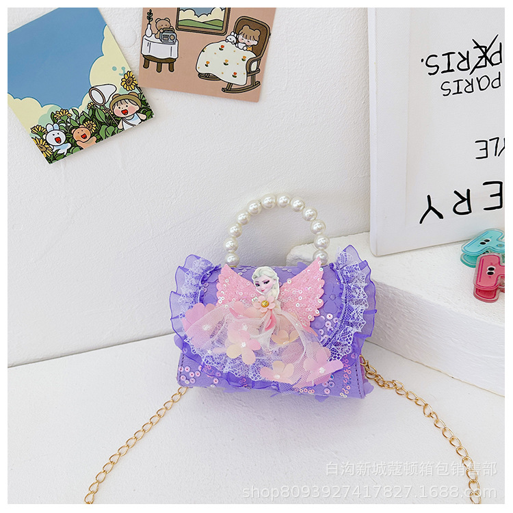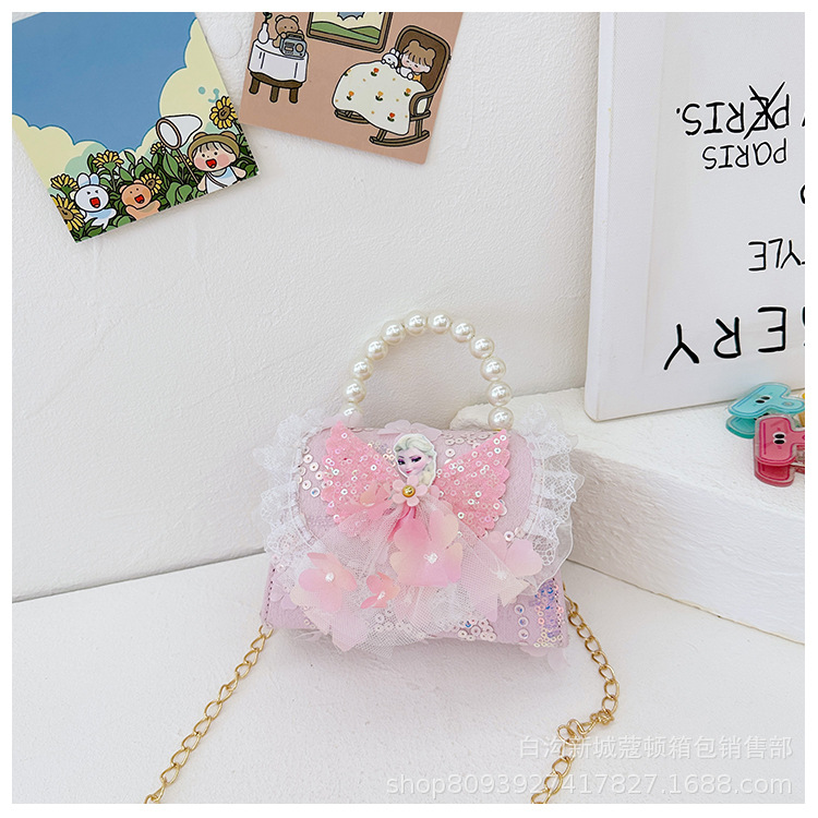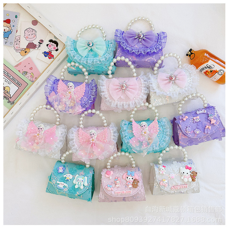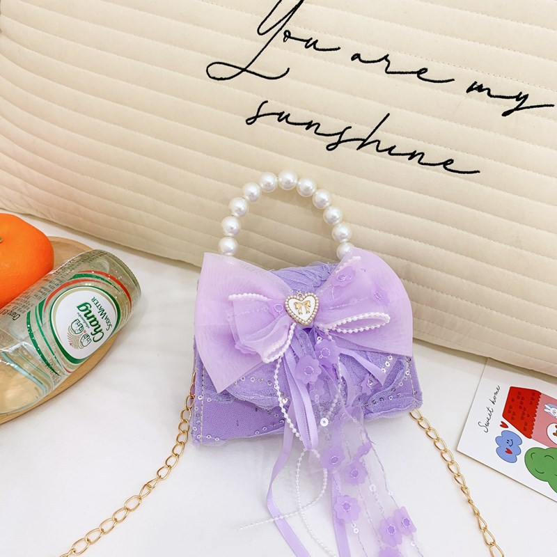 어린이 가방 패션 공주 진주 핸드백 귀여운 소녀 동전 지갑 서양식 레이스 어깨 메신저 가방스토어 가기
