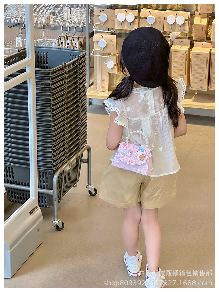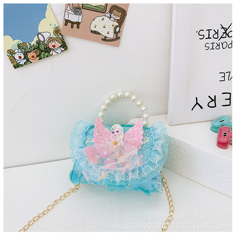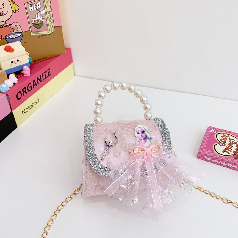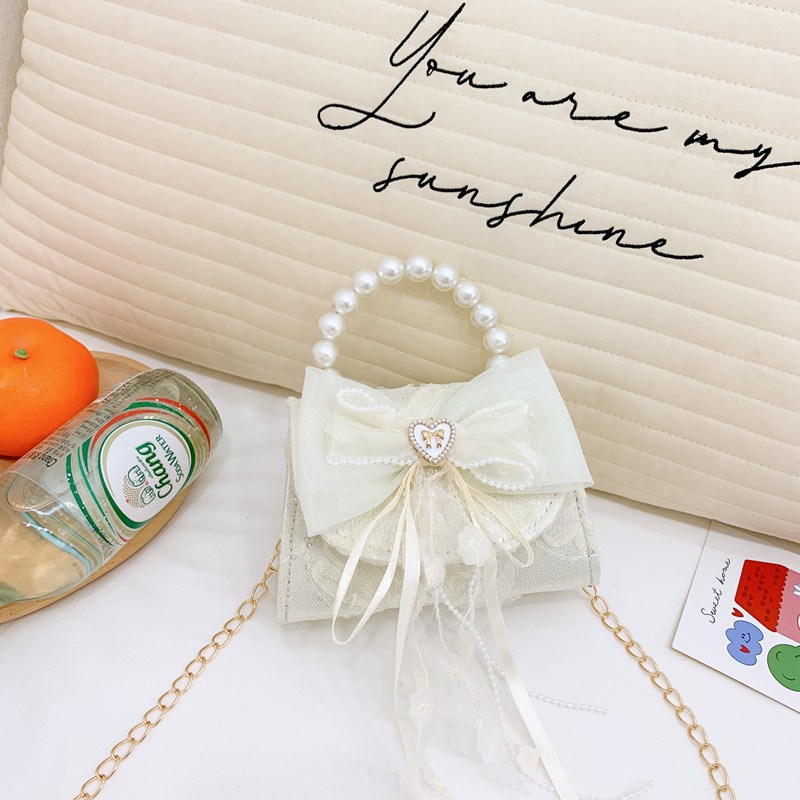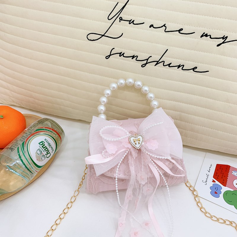 어린이 가방 패션 공주 진주 핸드백 귀여운 소녀 동전 지갑 서양식 레이스 어깨 메신저 가방