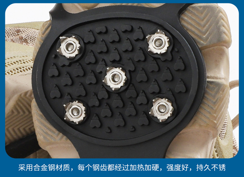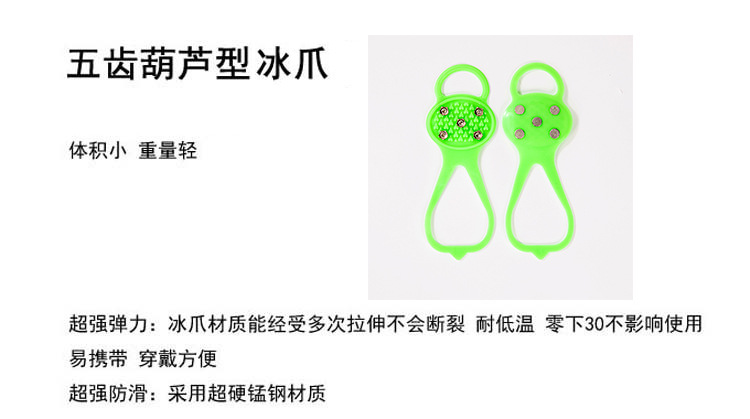 【温馨提示】每次使用完请保持干净,再干燥后收藏. ,此为登山户外辅助工具,请勿充当攀岩等专业工具使用5齿冰爪.