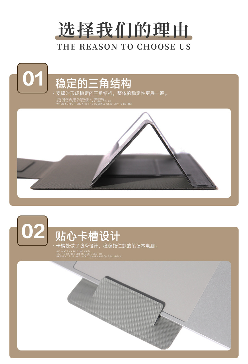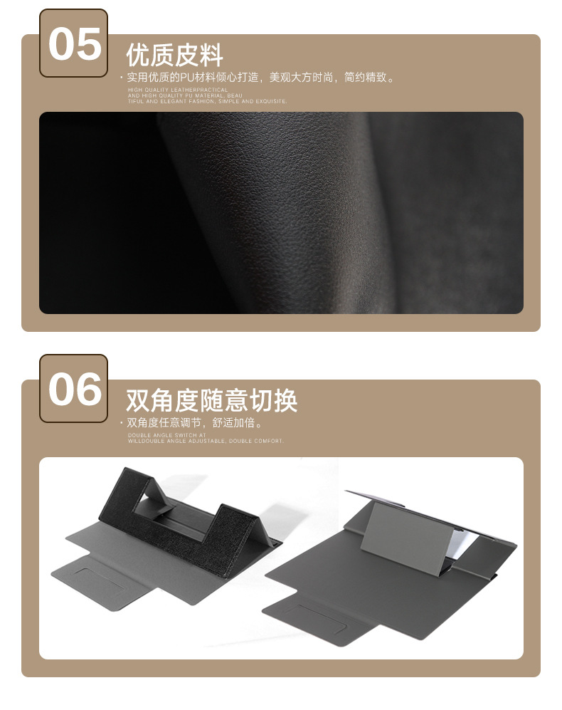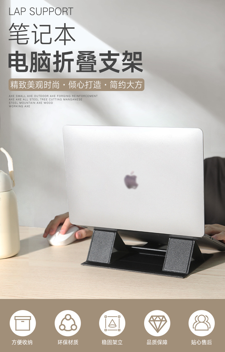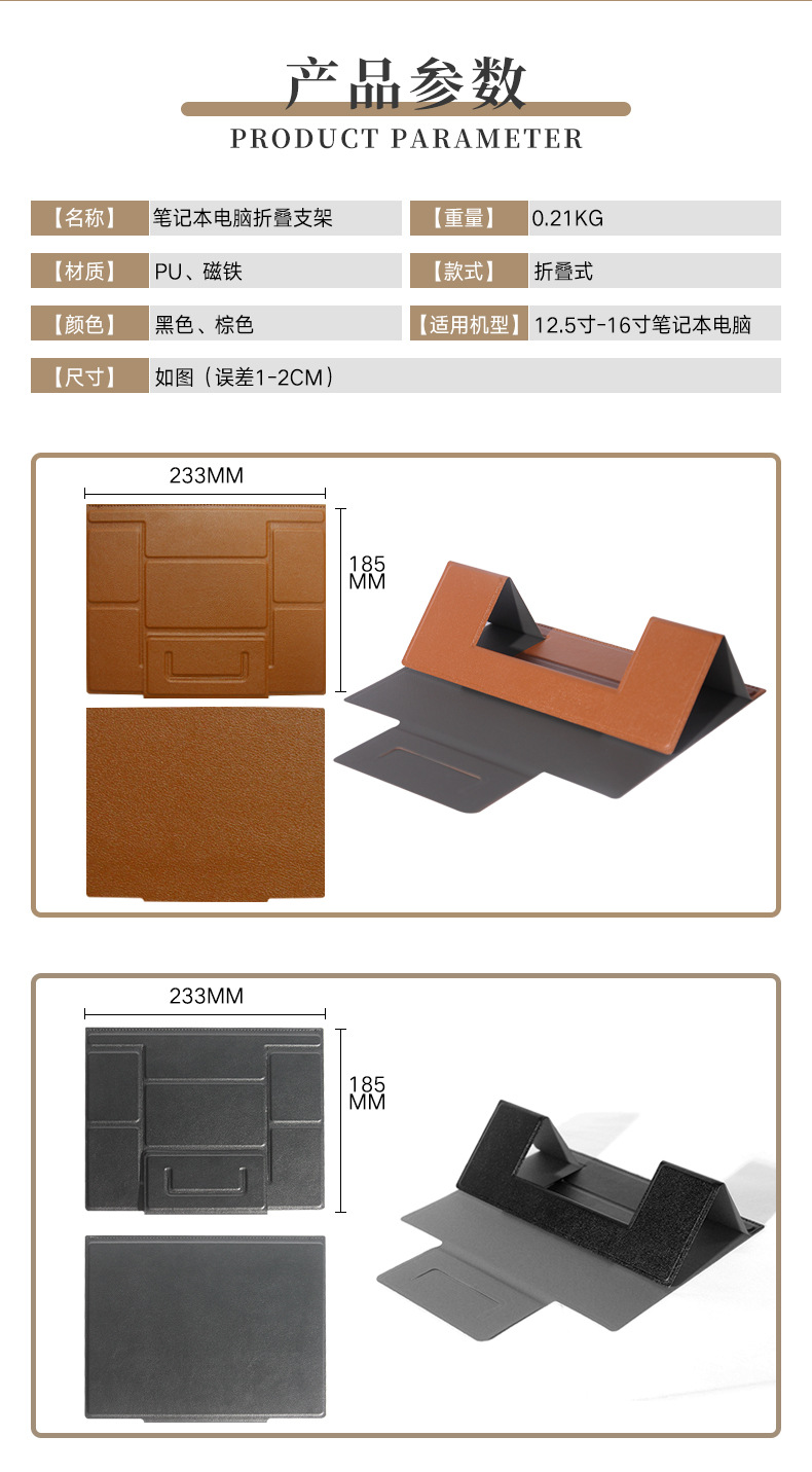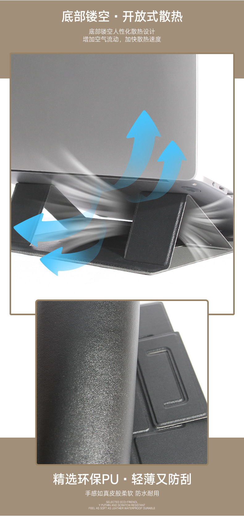 노트북 스탠드 접이식 스테레오베이스 상승 브래킷 데스크탑 컴퓨터 냉각 브래킷 플랫 PU 가죽 브래킷