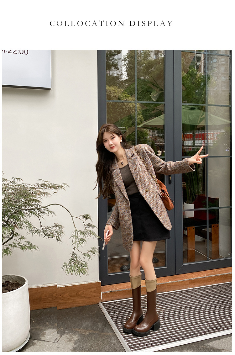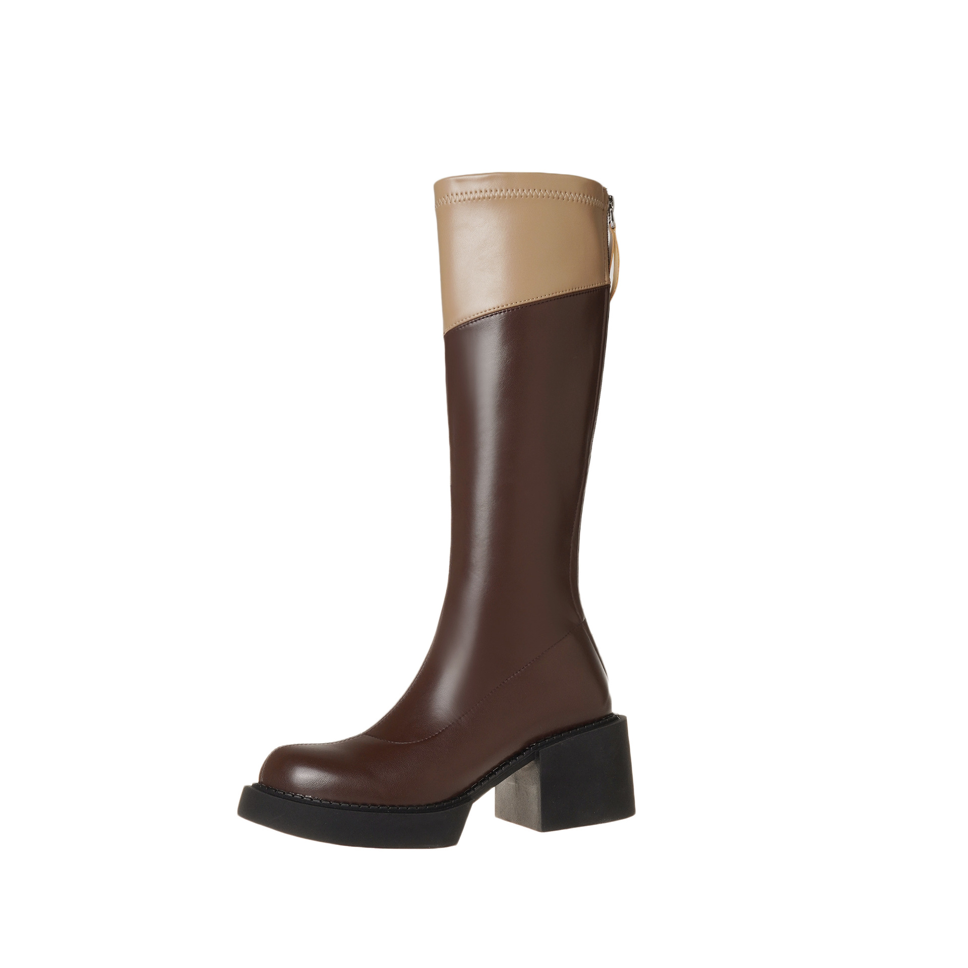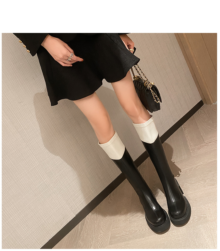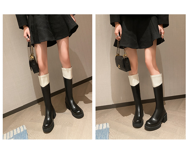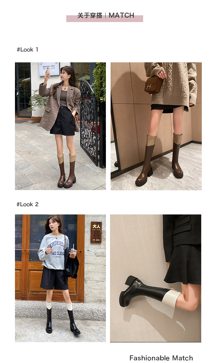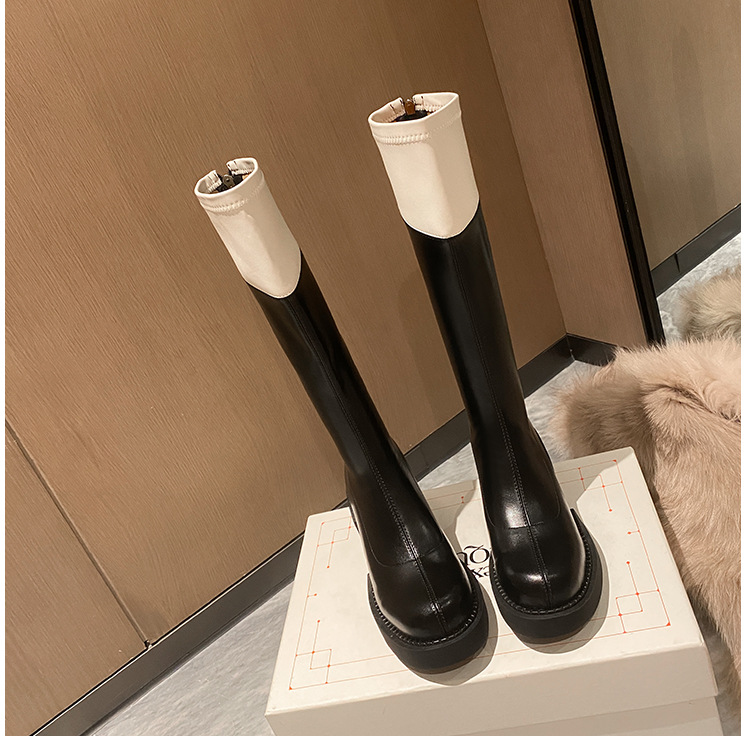 Qiu Meier 컬러 매칭 ~ 슬림 슈즈 여성용 두꺼운 굽 두꺼운 바닥 탄성 Maillard 높은 부츠 두꺼운 다리 큰 튜브 긴 튜브스토어 가기