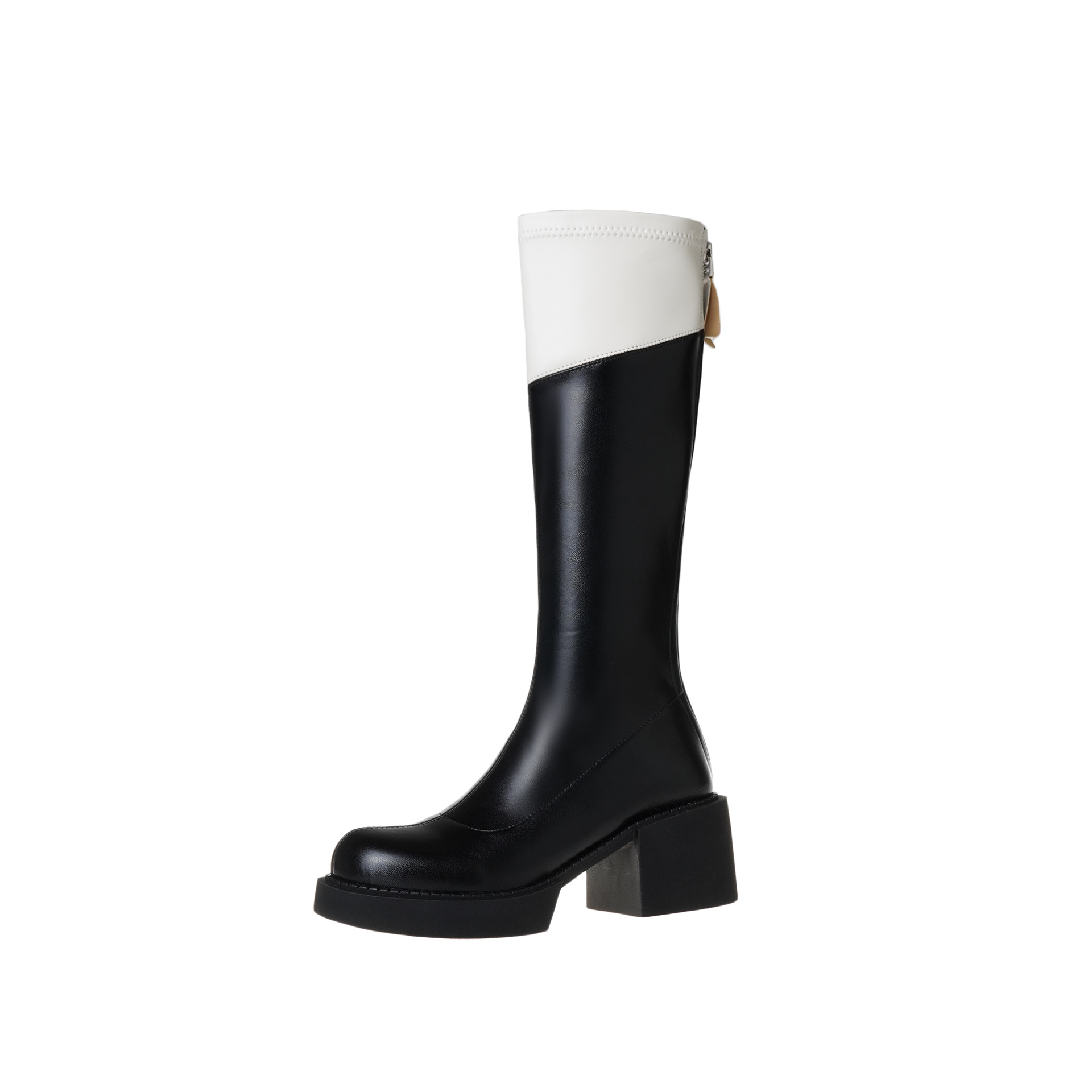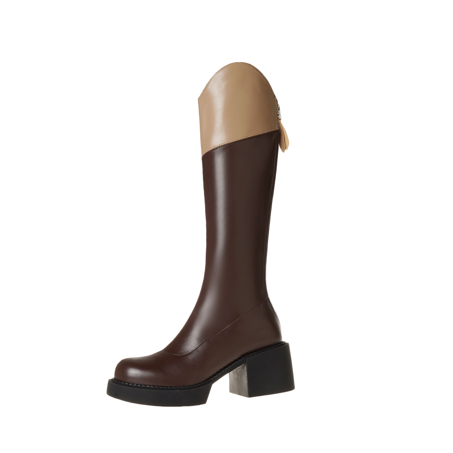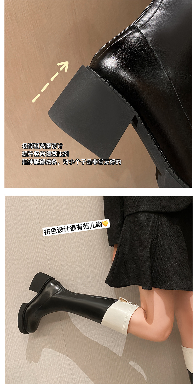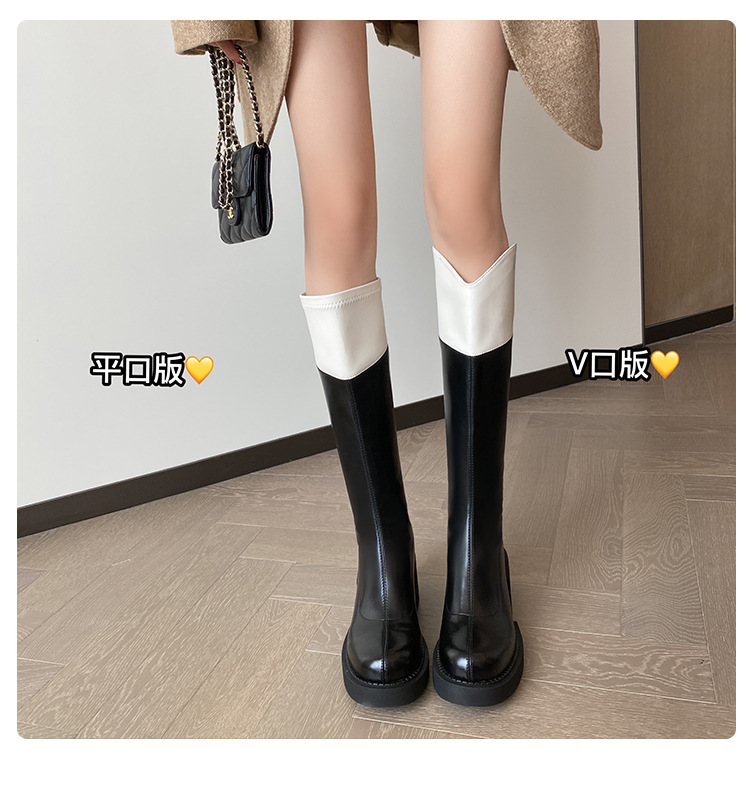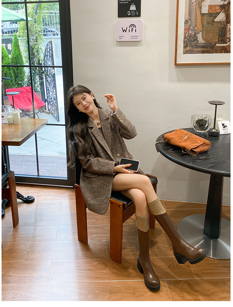 Qiu Meier 컬러 매칭 ~ 슬림 슈즈 여성용 두꺼운 굽 두꺼운 바닥 탄성 Maillard 높은 부츠 두꺼운 다리 큰 튜브 긴 튜브스토어 가기