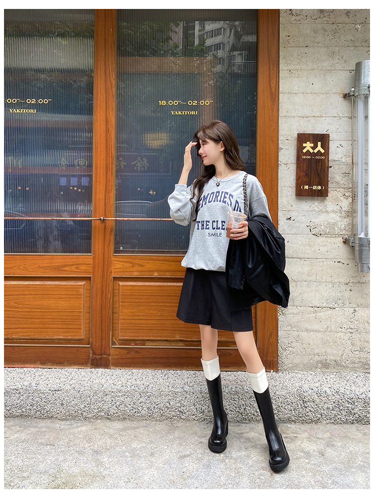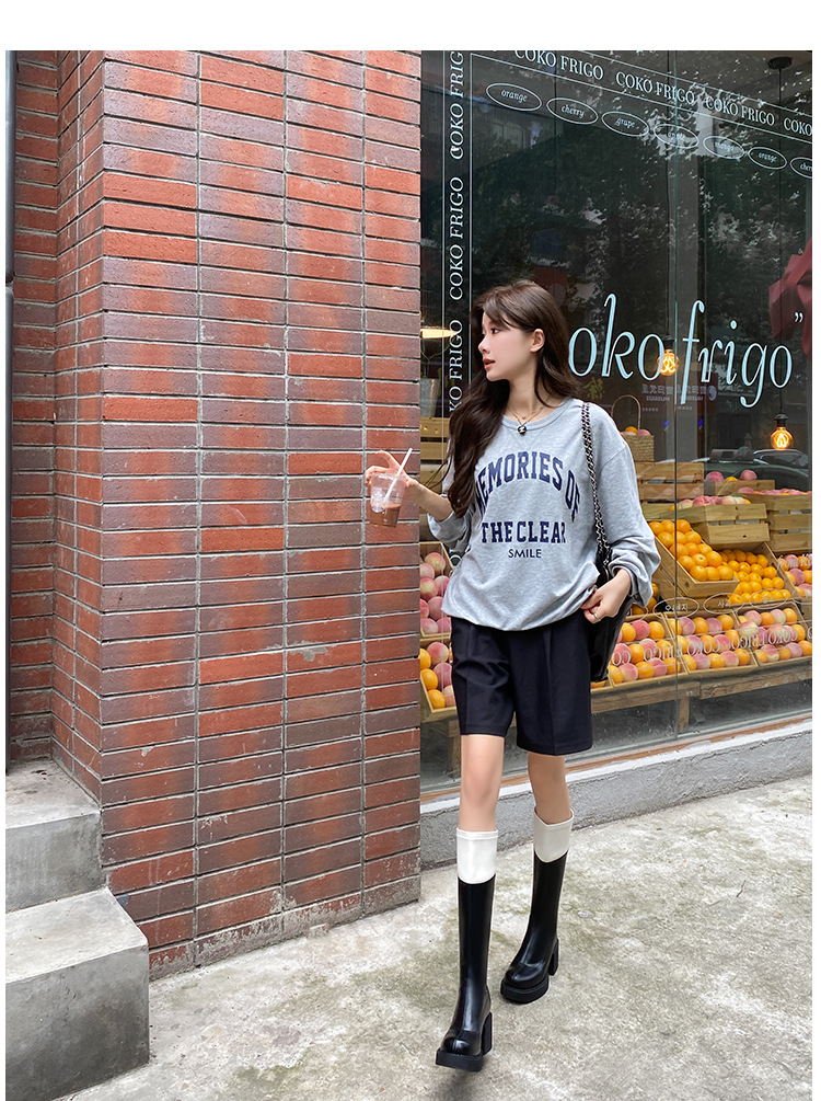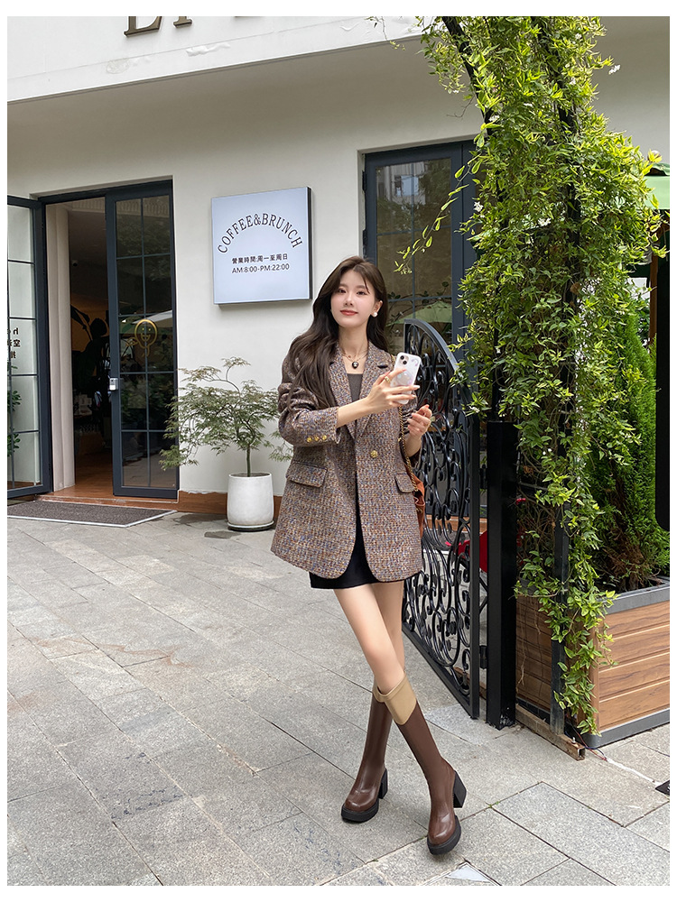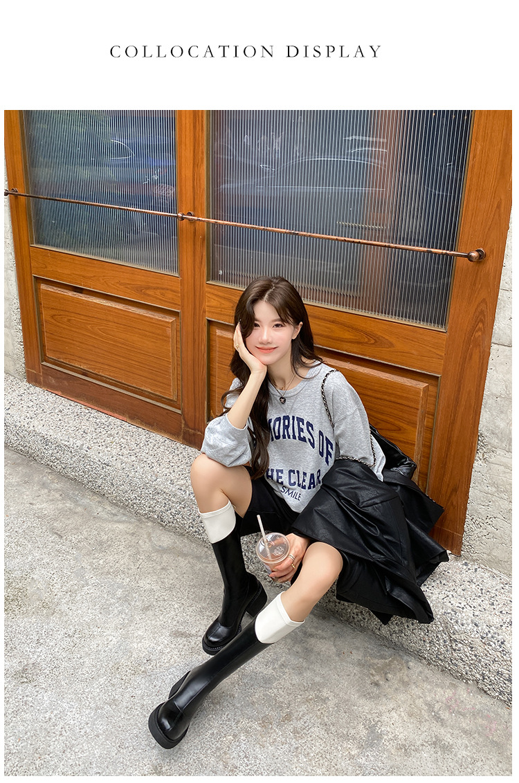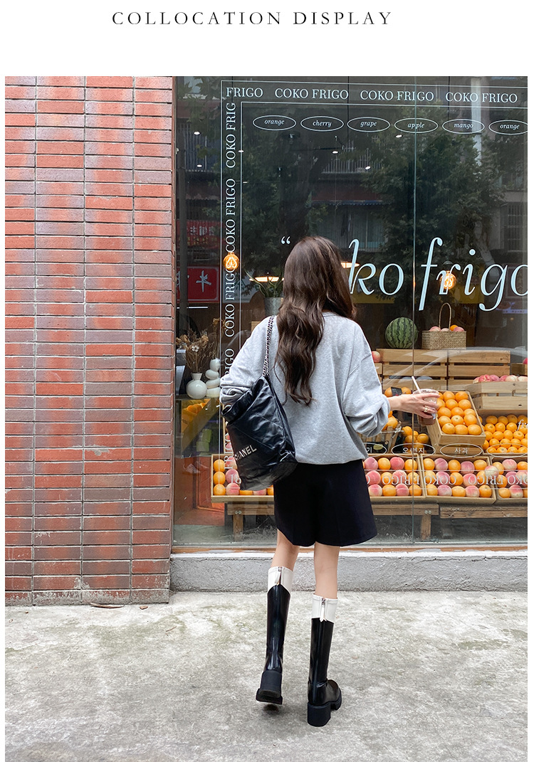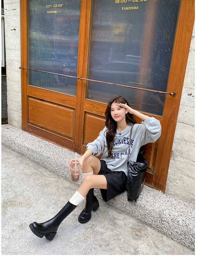 Qiu Meier 컬러 매칭 ~ 슬림 슈즈 여성용 두꺼운 굽 두꺼운 바닥 탄성 Maillard 높은 부츠 두꺼운 다리 큰 튜브 긴 튜브스토어 가기