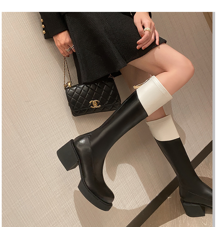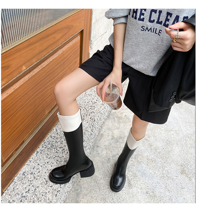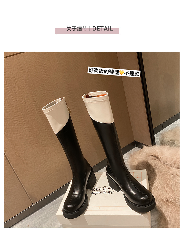 Qiu Meier 컬러 매칭 ~ 슬림 슈즈 여성용 두꺼운 굽 두꺼운 바닥 탄성 Maillard 높은 부츠 두꺼운 다리 큰 튜브 긴 튜브