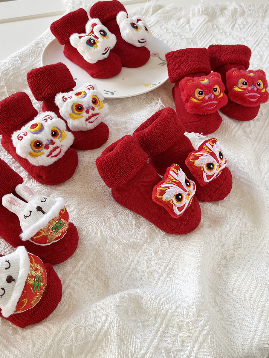 베밍니아 국립 조류 신생아 겨울 큰 레드 테리 미끄럼 방지 바닥 양말 소년 소녀를위한 만화 아기 양말