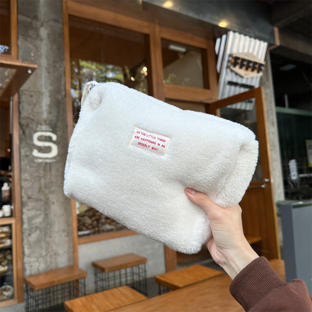 310153 가을과 겨울 대용량 화장품 가방 양고기 봉제 스킨 케어 보관 가방 워시백 라이너 여행 가방
