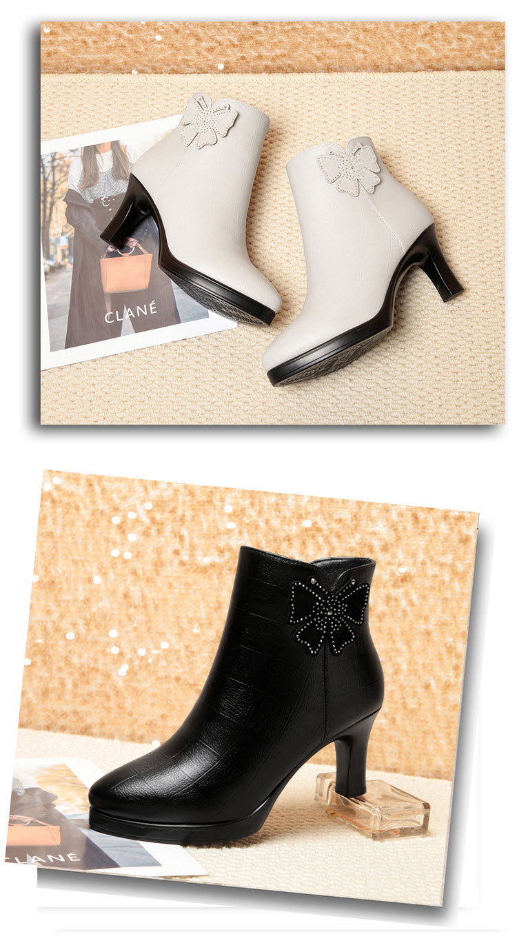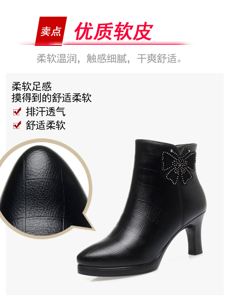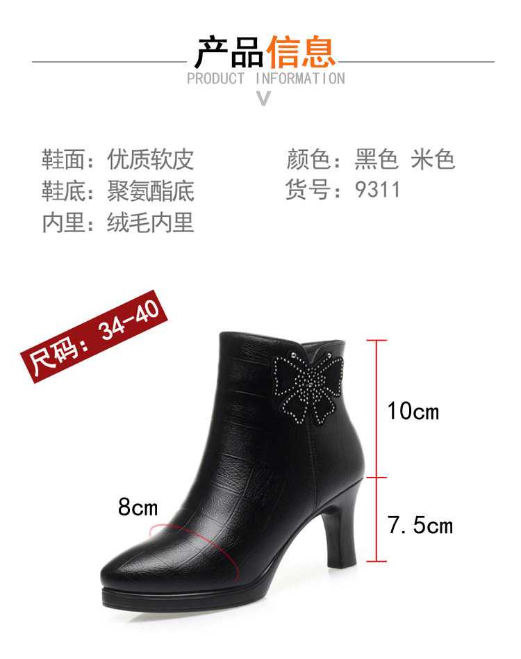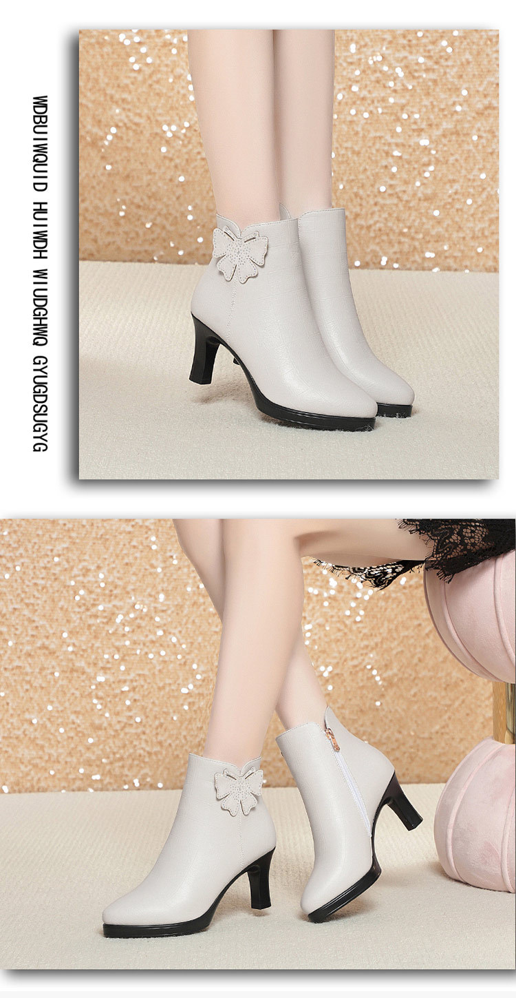 새로운 가을과 겨울 2023 여성을위한 하이힐 짧은 부츠 스커트 부츠 뾰족한 발가락 뒤꿈치 여성용 부츠 어머니 기모 가죽 신발