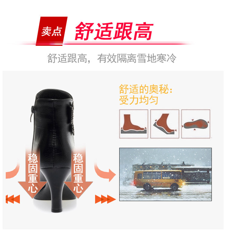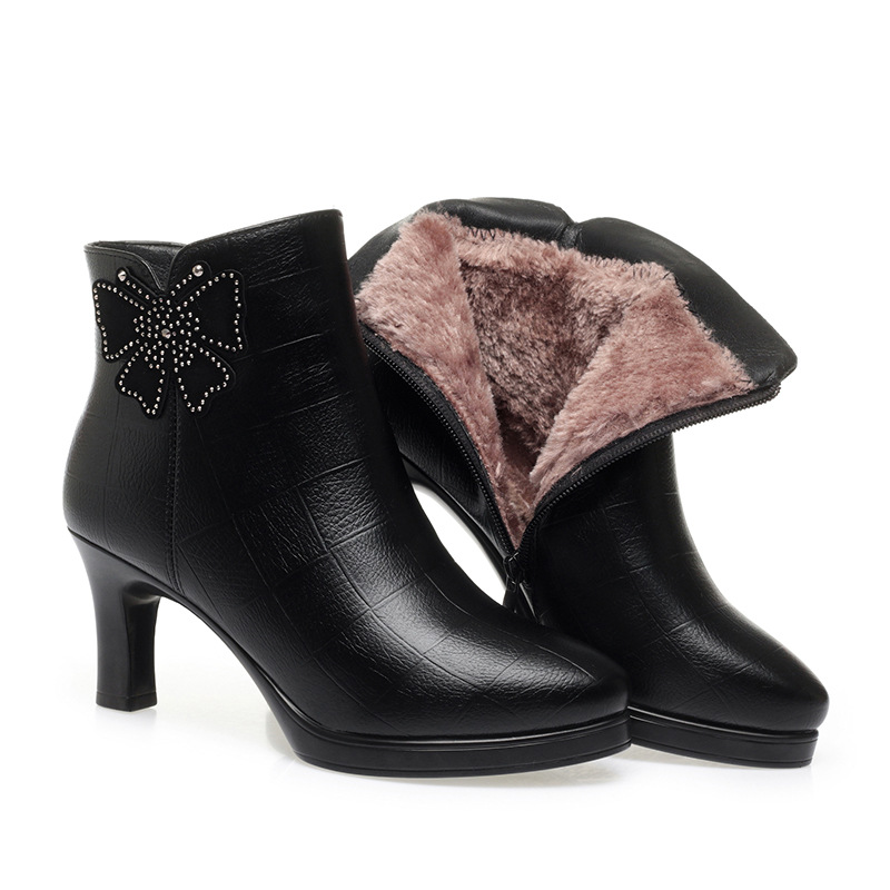 새로운 가을과 겨울 2023 여성을위한 하이힐 짧은 부츠 스커트 부츠 뾰족한 발가락 뒤꿈치 여성용 부츠 어머니 기모 가죽 신발스토어 가기