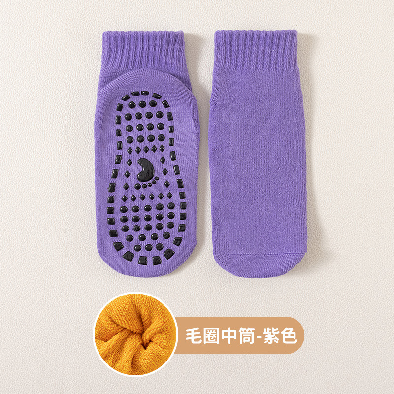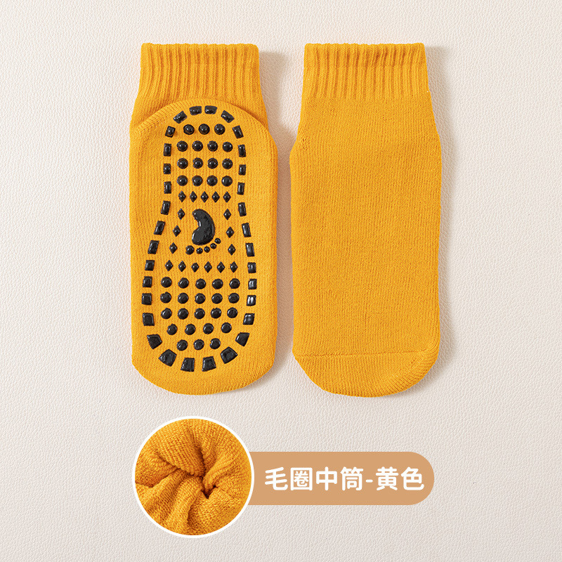 엄선된 두꺼운 미끄럼 방지 바닥 양말, 가을 겨울용 보온 트램폴린 양말, 성인용 실내 요가 및 어린이 놀이터 양말스토어 가기