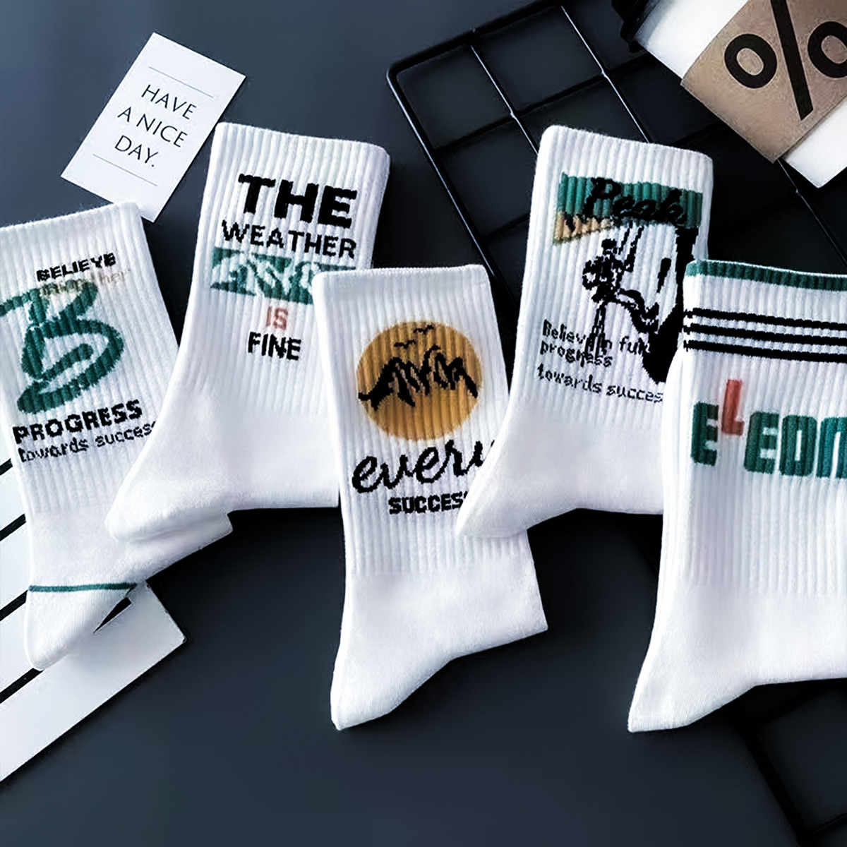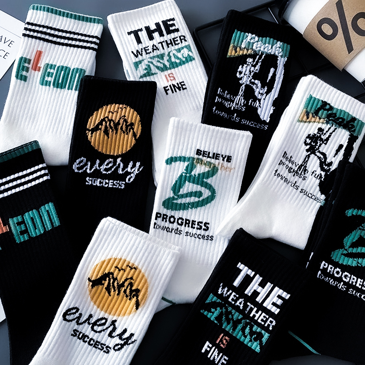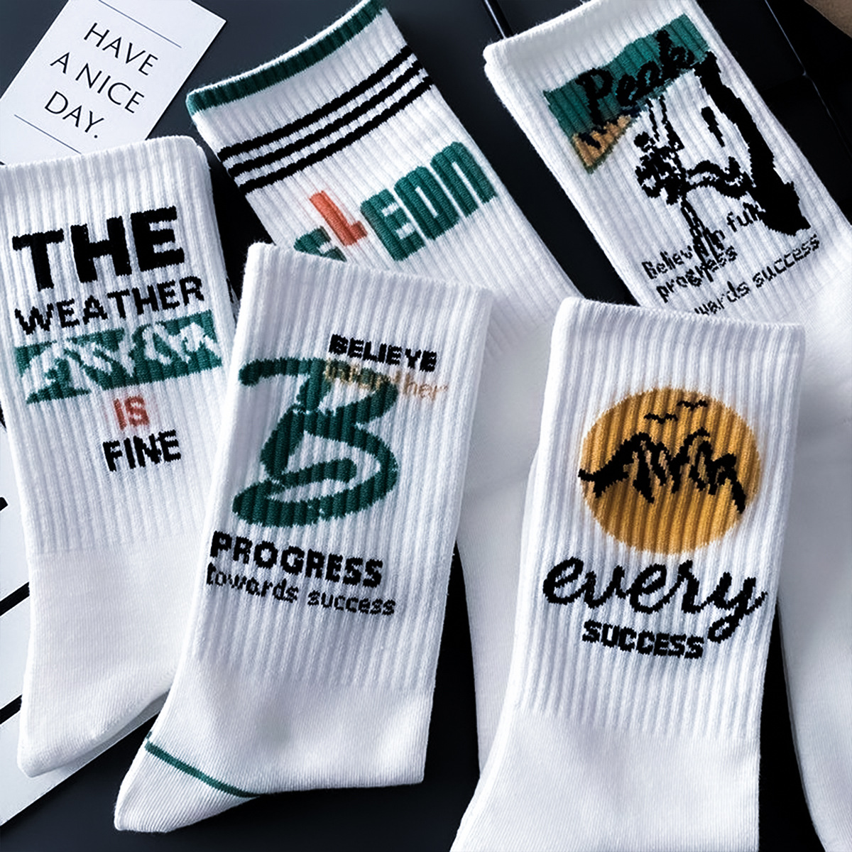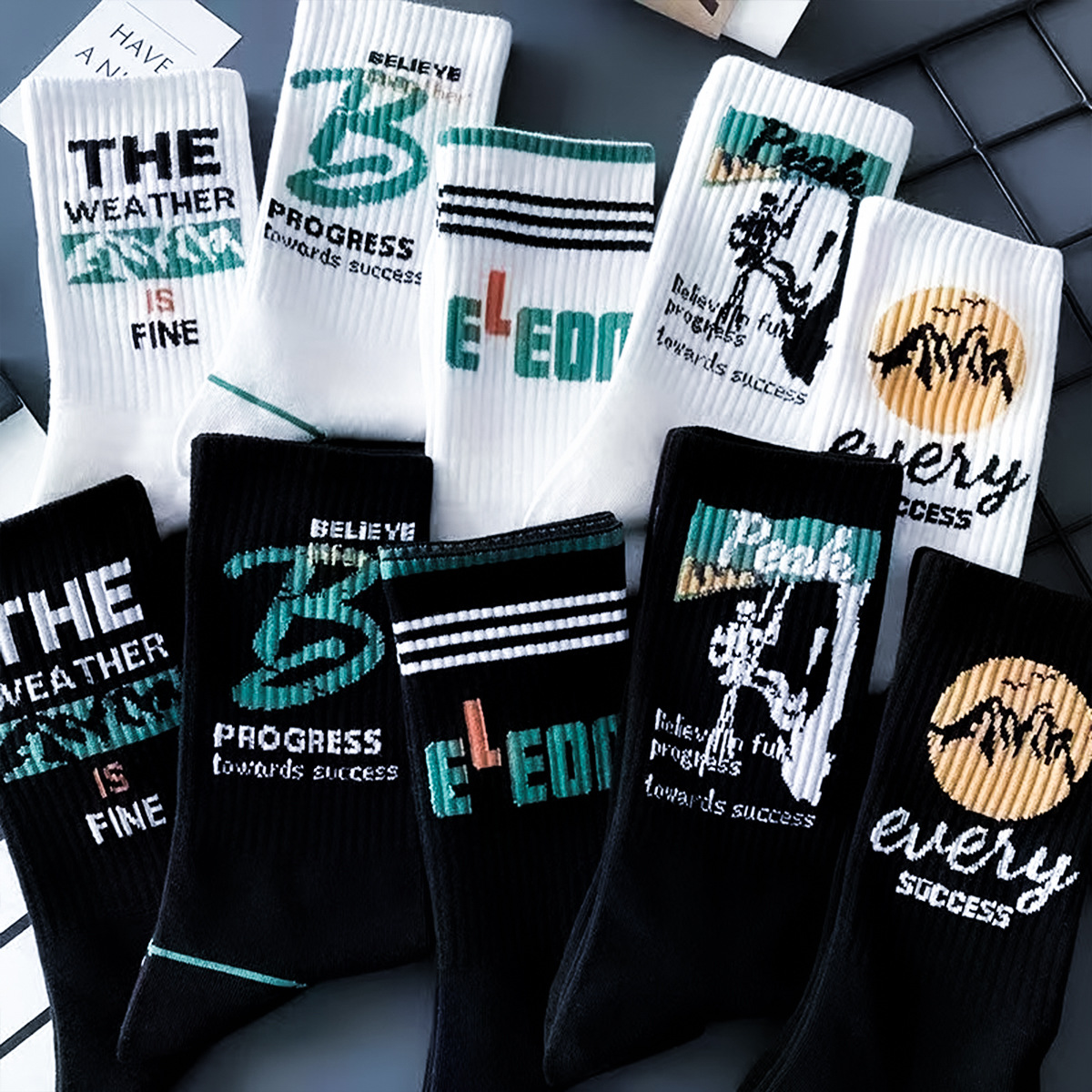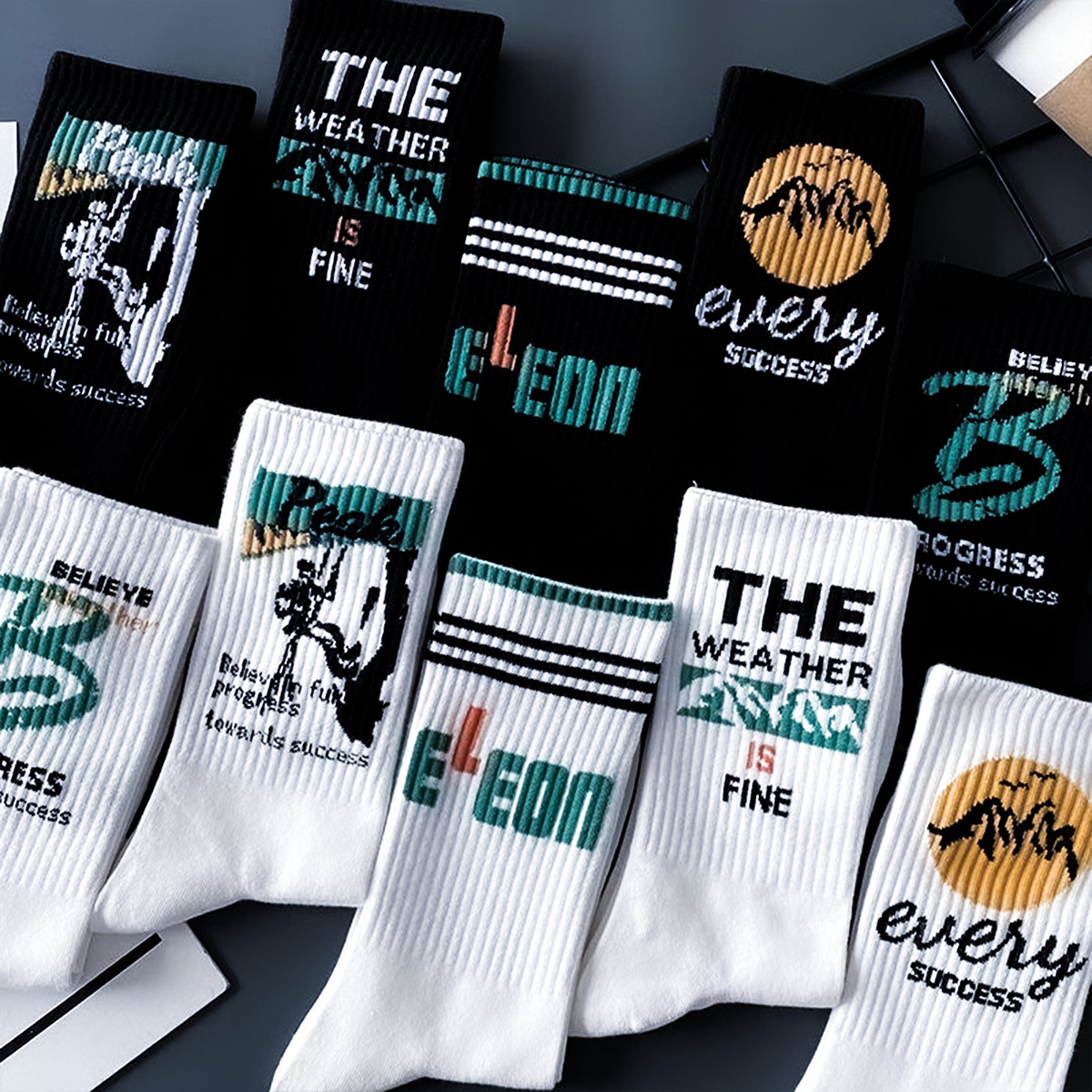 Zhuji 양말 남성 가을, 겨울 산악인 편지 중반 송아지 양말 청소년 가을, 겨울 탈취제 땀 흡수 기능 다목적스토어 가기
