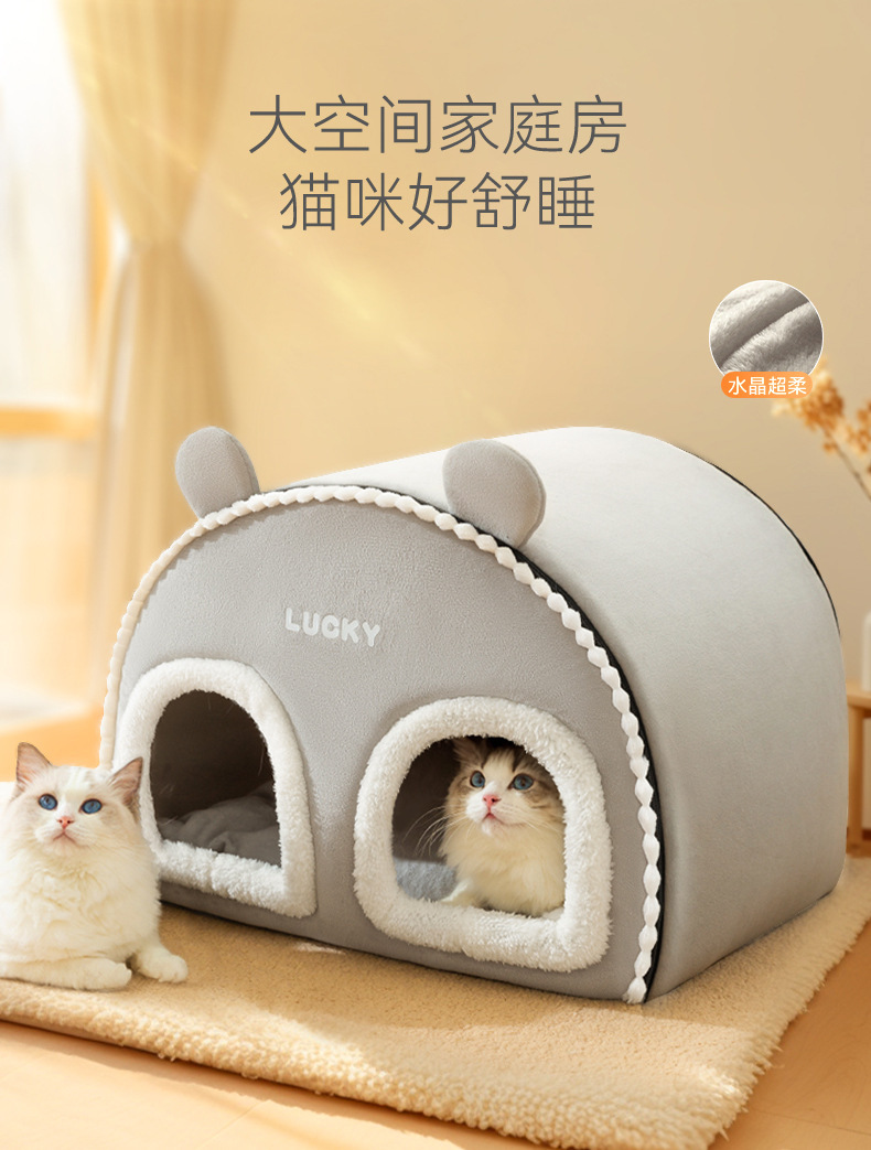 겨울 고양이 둥지 따뜻한 두꺼운 반 폐쇄 멀티 애완 동물 가족 새끼 고양이 큰 공간 고양이 침대 사육장 애완 동물 둥지 매트스토어 가기