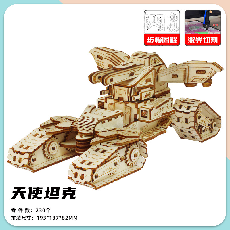 나무 입체 조립 군사 모델 천사 탱크 퍼즐 조립 소년 나무 장난감 DIY 오두막 퍼즐스토어 가기