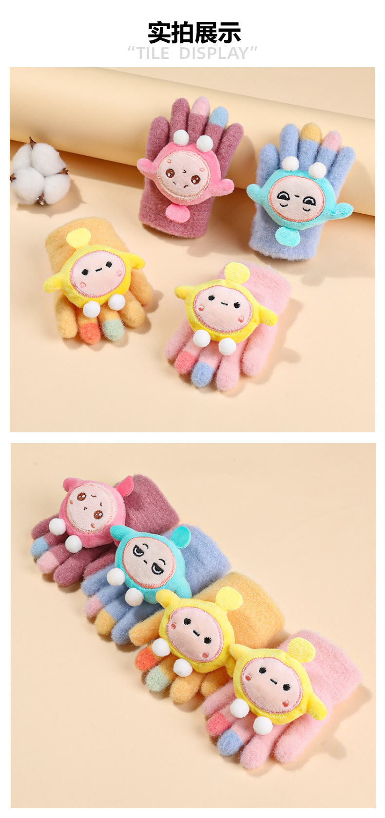 새로운 어린이용 3-5세 아기용 풀핑거 장갑, 따뜻함 유지, 제조사 직판 도매, 귀여운 만화 캐릭터 장갑스토어 가기