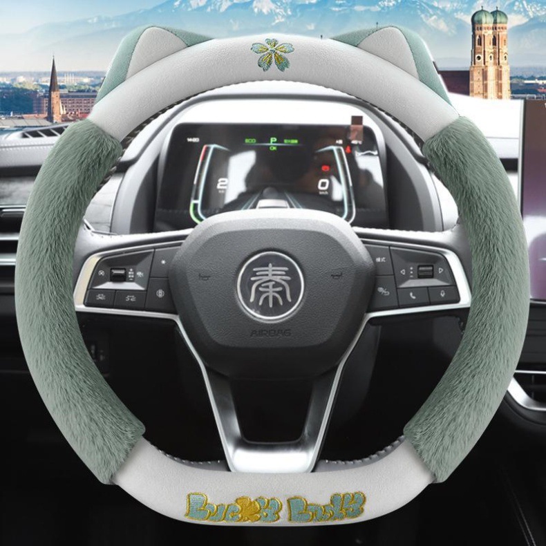 • BYD 노래 스페셜-DLS-와이프 티 그린-플러시-D 스티어링 휠 커버