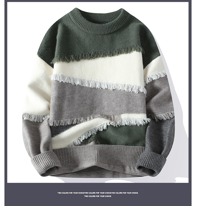 스웨터 남자의 겨울 새로운 스티칭 패션 트렌드 라운드 넥 느슨한 니트 스웨터 남자의 높은 감각 남자의 니트 스웨터스토어 가기