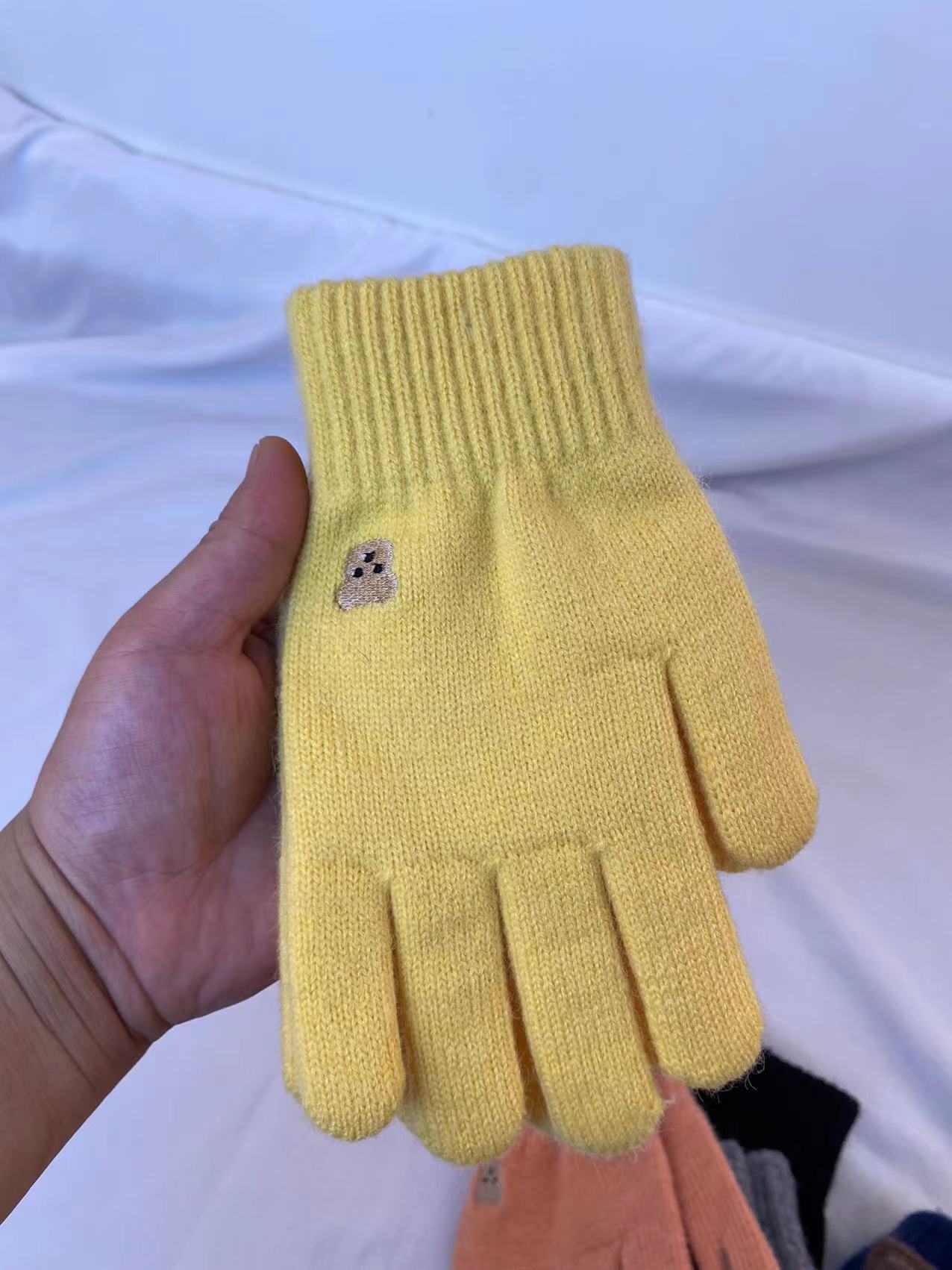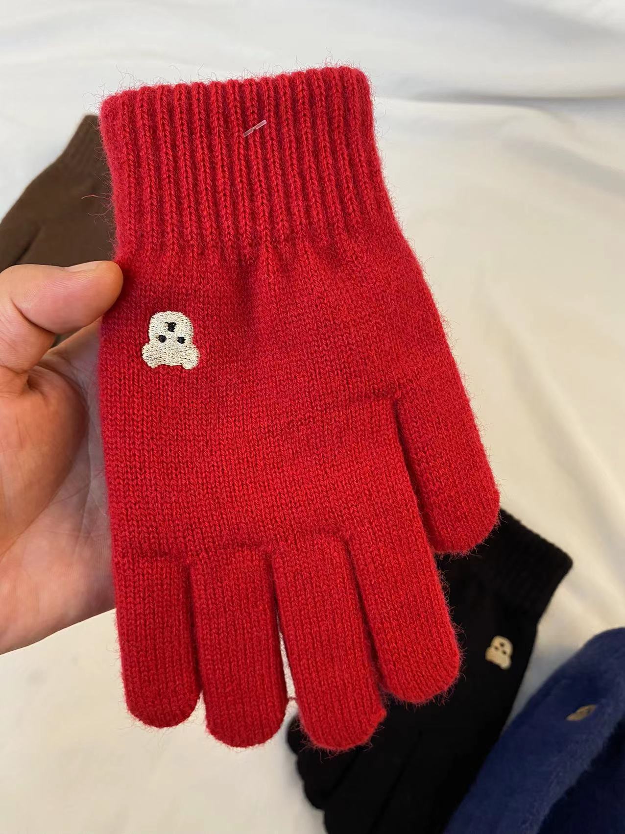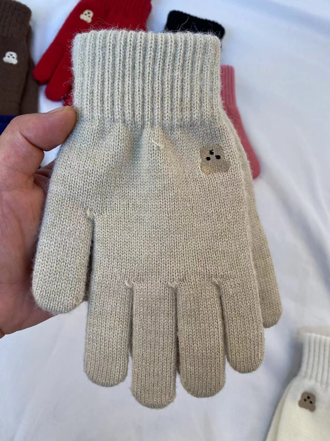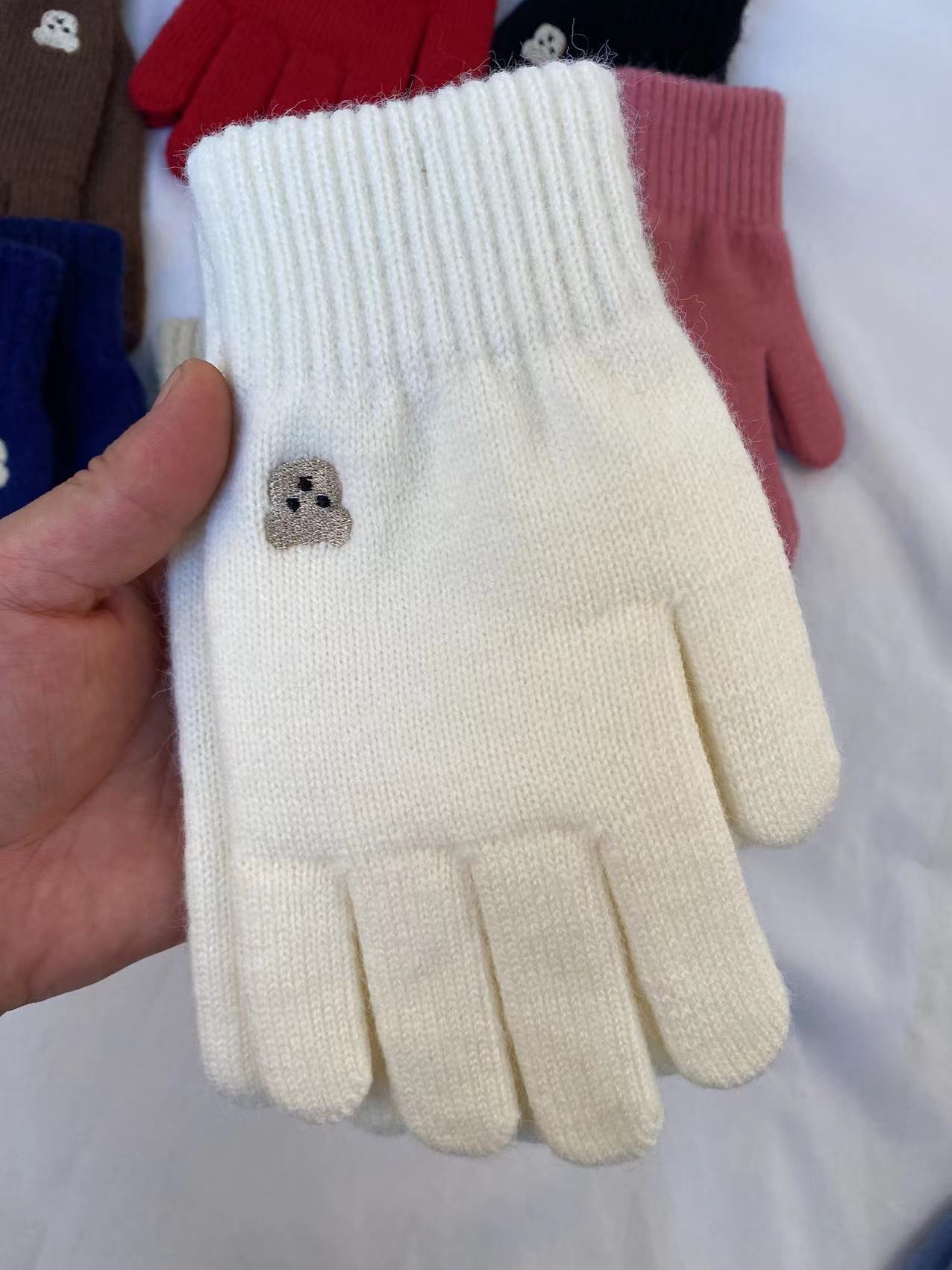 小熊针织毛线手套冬季保暖触屏可爱纯色刺绣分指开洞漏指小香风潮 针织毛线材质 手套均码 内里拉毛 手指处开洞设计方便触屏玩手机 不用摘下手机 即可方便操作 , 手套 重 约55克 手套尺寸 22 长乘以11厘米宽 厚度1.5 厘米 外贸箱规一个中包12 双 一双独立opp袋装。大货请联系客服发实惠物流 拍下请联系我们改运费 目前合作中通 韵达快递支持一件代发 支持定做加印logo 欢迎下单!厂家一手货源 稳定出货 欢迎直播电商合作 !