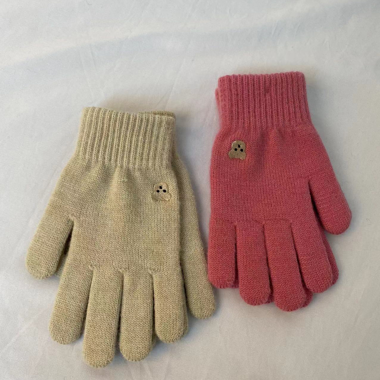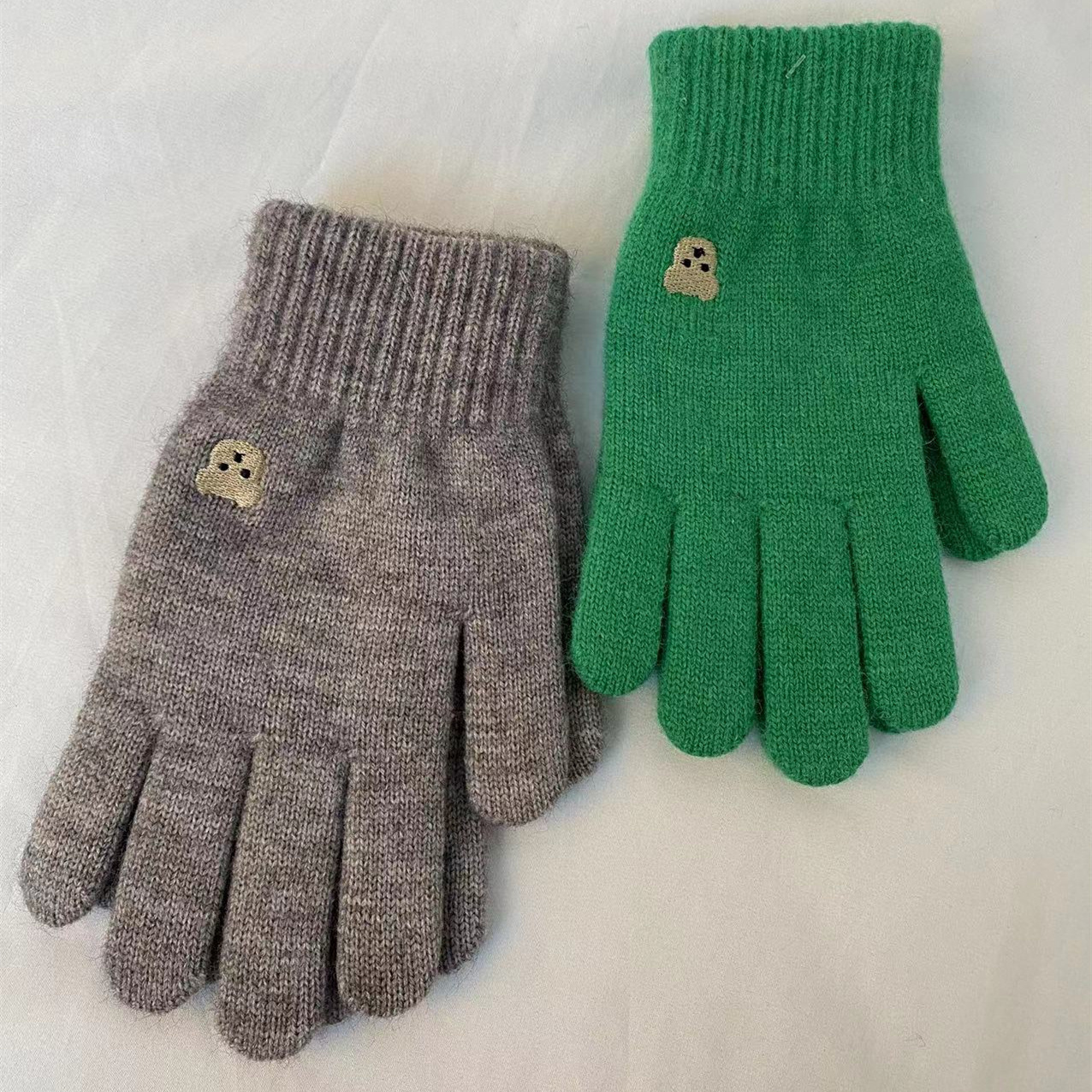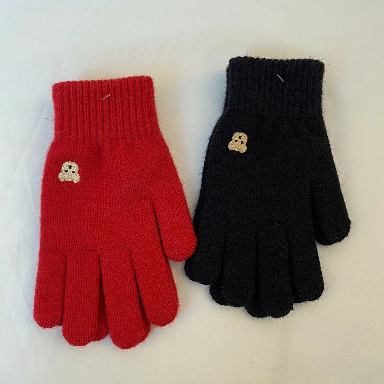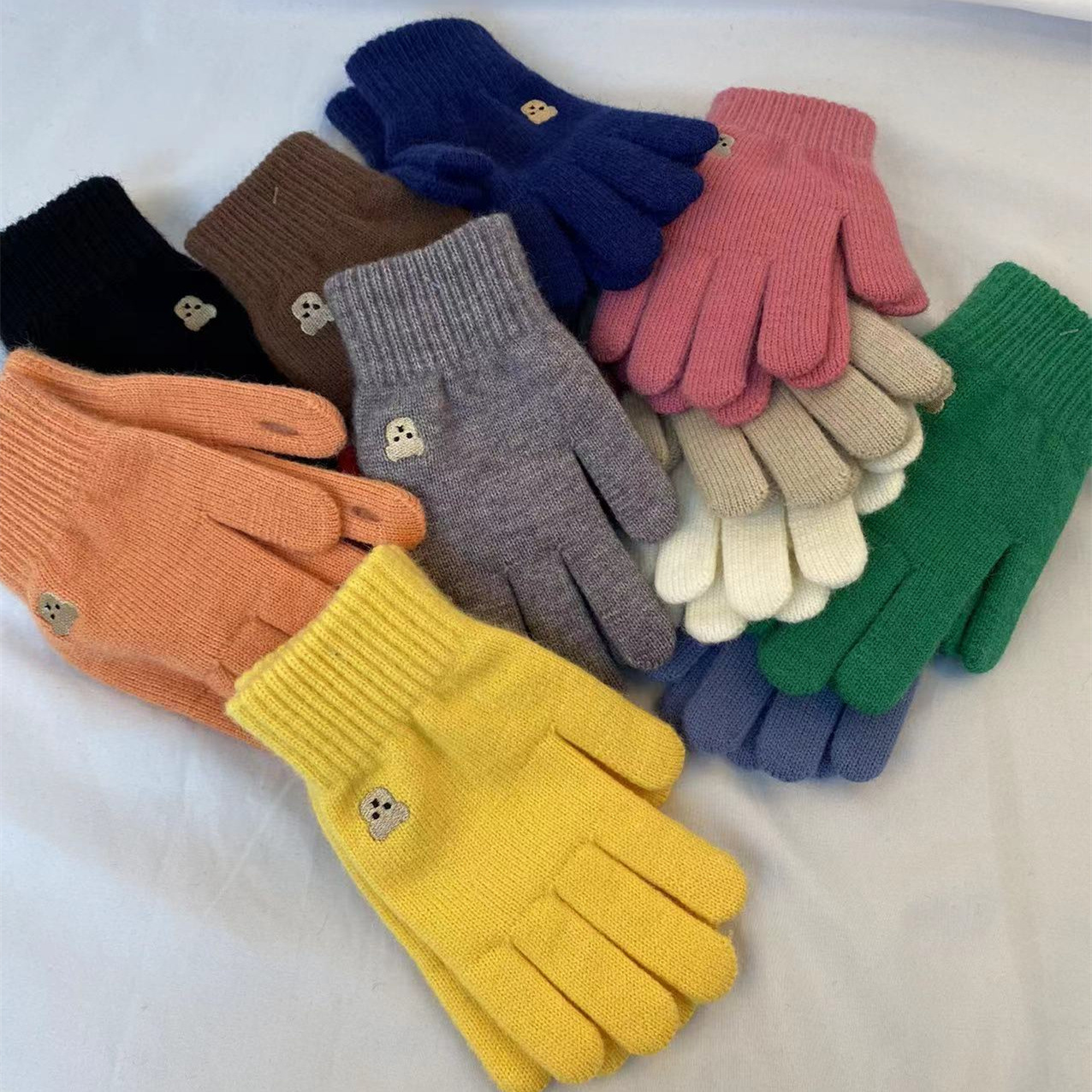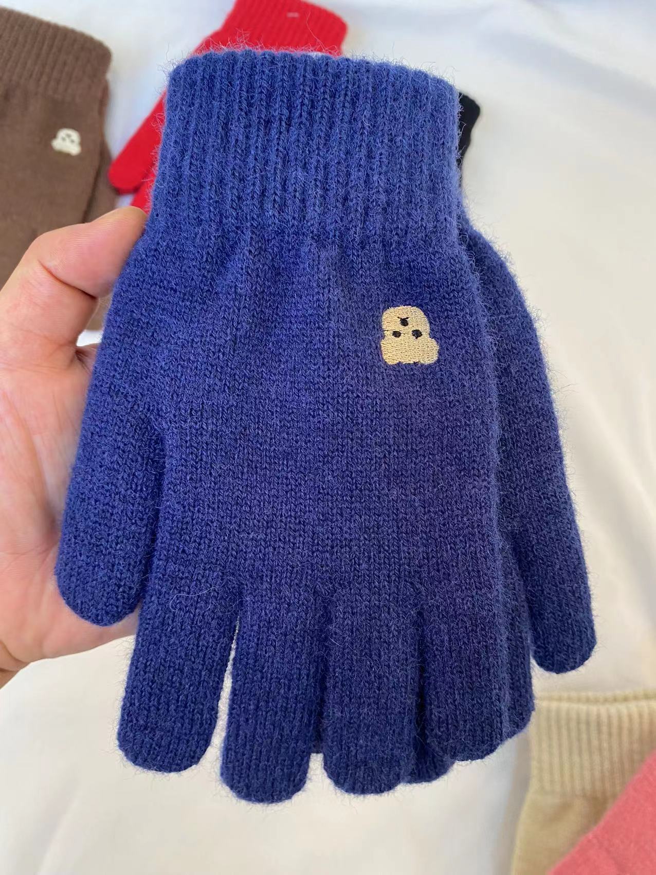 小熊针织毛线手套冬季保暖触屏可爱纯色刺绣分指开洞漏指小香风潮 针织毛线材质 手套均码 内里拉毛 手指处开洞设计方便触屏玩手机 不用摘下手机 即可方便操作 , 手套 重 约55克 手套尺寸 22 长乘以11厘米宽 厚度1.5 厘米 外贸箱规一个中包12 双 一双独立opp袋装。大货请联系客服发实惠物流 拍下请联系我们改运费 目前合作中通 韵达快递支持一件代发 支持定做加印logo 欢迎下单!厂家一手货源 稳定出货 欢迎直播电商合作 !