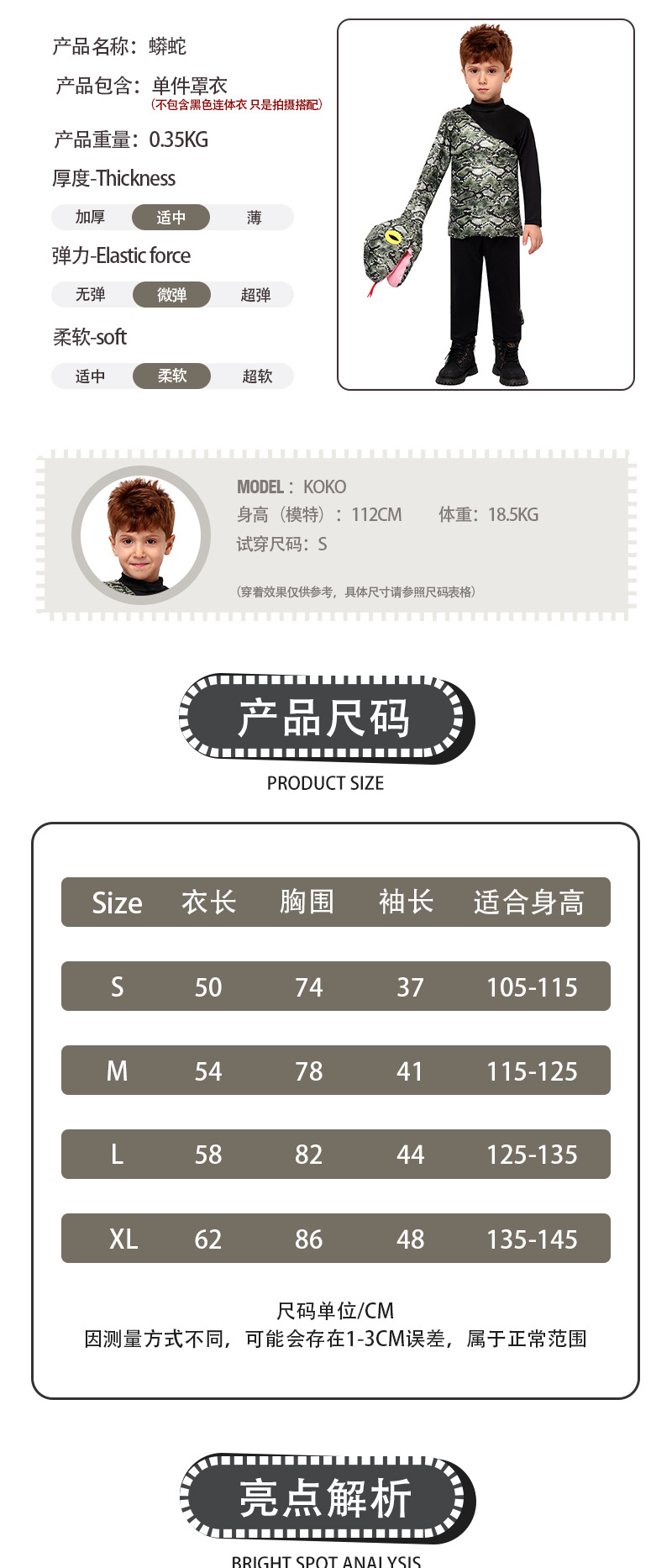 새로운 할로윈 파이썬 코스 의상 유치원 동물 코스프레 의상 어린이 점프 슈트 의상