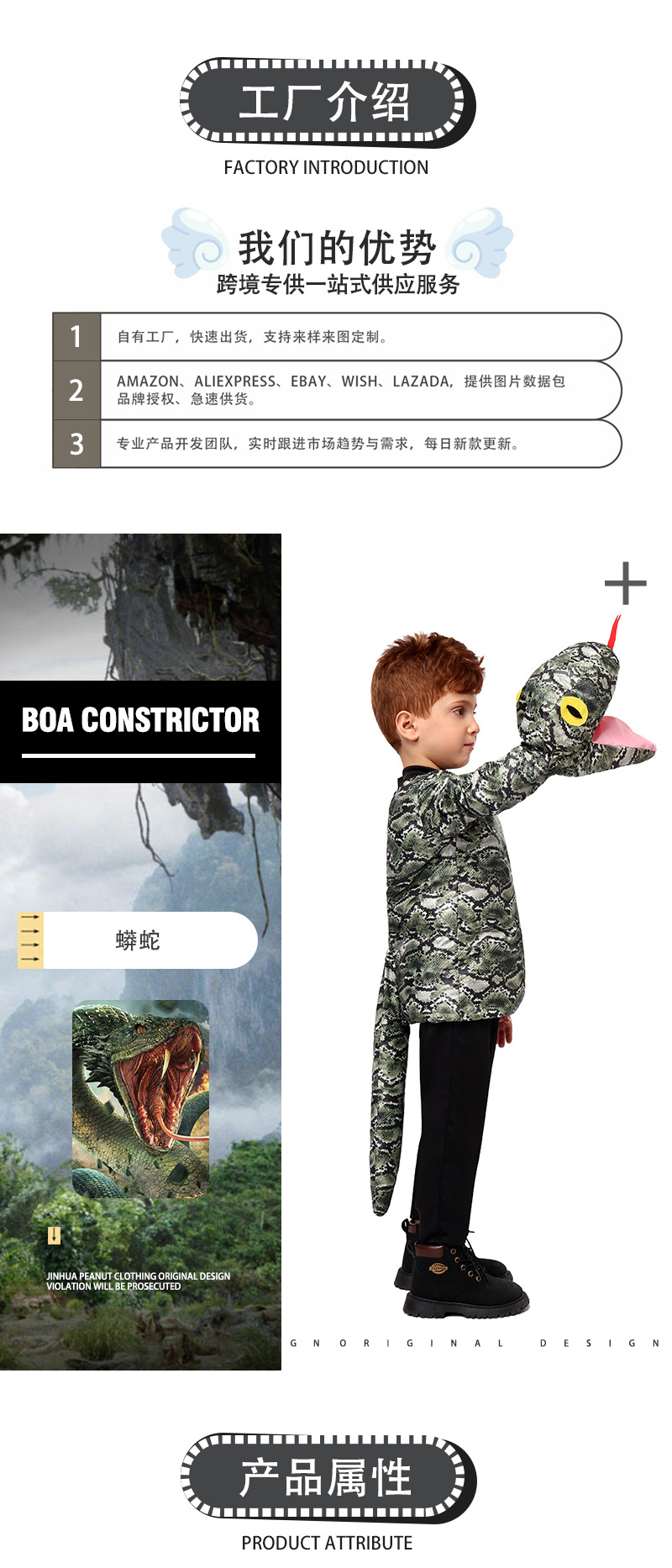 새로운 할로윈 파이썬 코스 의상 유치원 동물 코스프레 의상 어린이 점프 슈트 의상스토어 가기