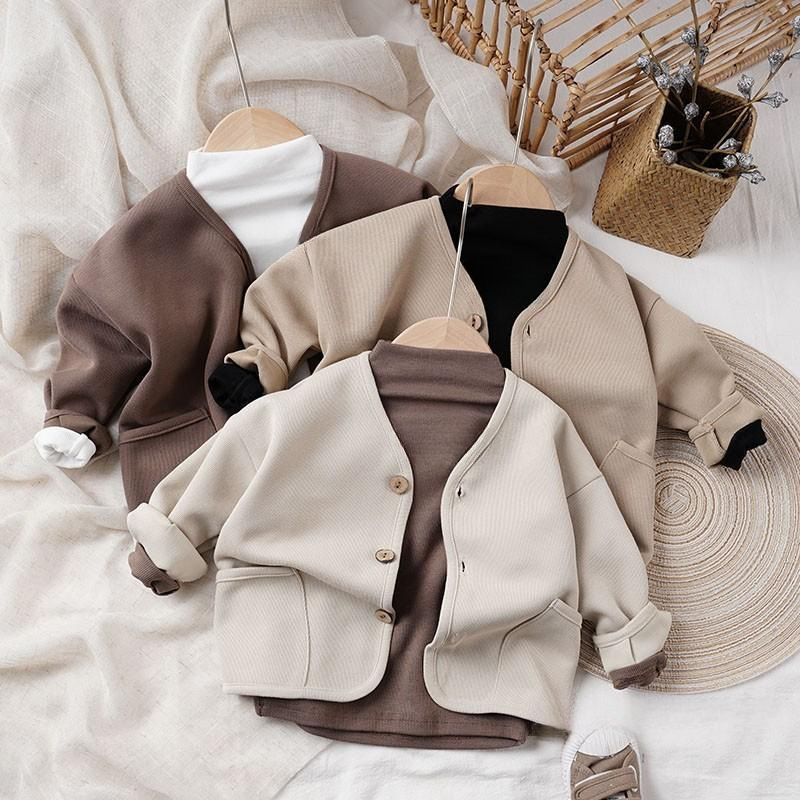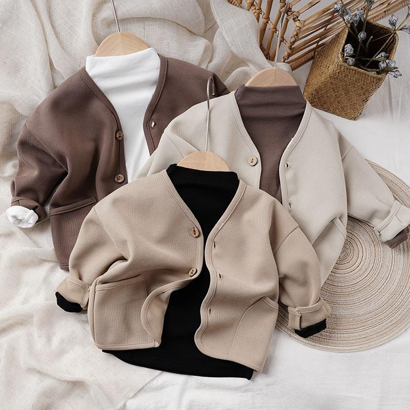 2023 복지 면 가을 어린이 느슨한 캐주얼 긴팔 가디건 남아 아기 한국 스타일 웨스턴 스타일 탑 코트